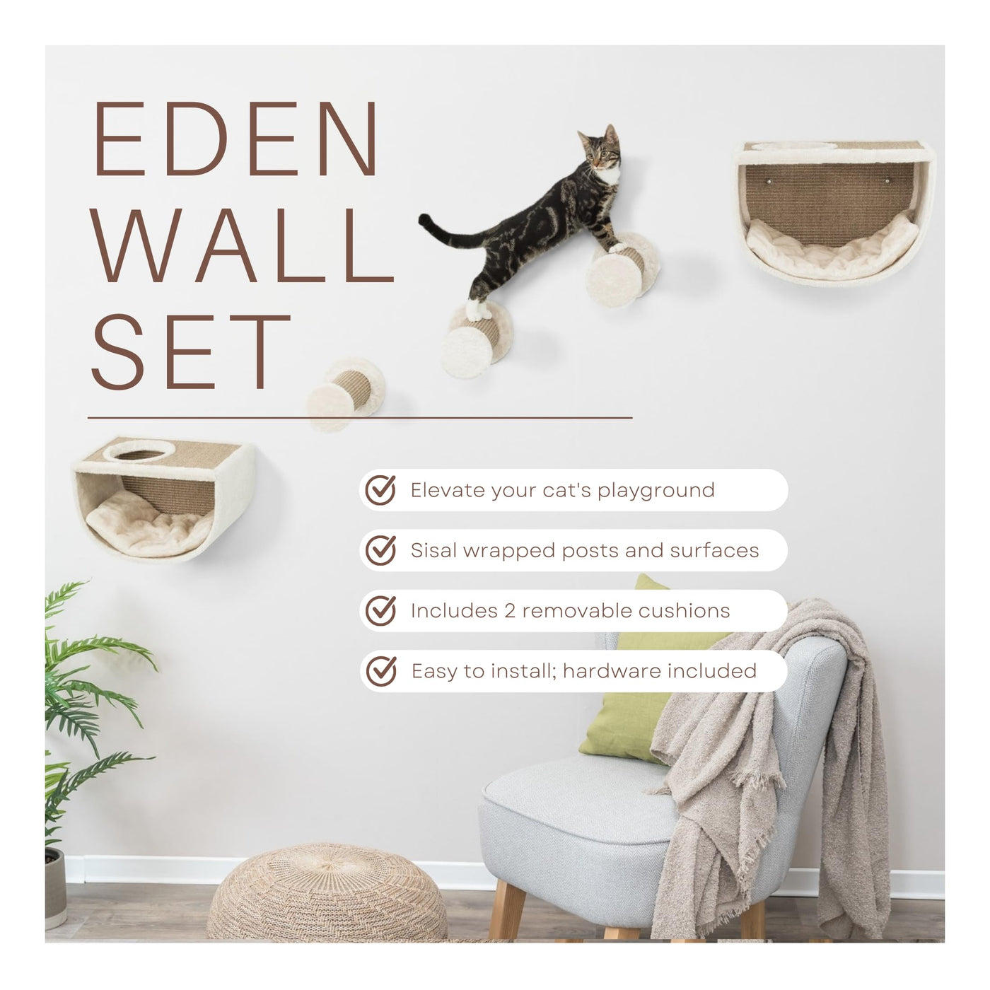 Elevate Your Feline Friend And Reclaim Your Floor Space With This The Trixie Eden Wall Mount Cat Tree. A Great Space-Saving Lounging Set, Ideal For Small Spaces. Each Of Our 3 Steps Are Wrapped With Natural, Durable Sisal To Engage Your Frisky Feline. Our 2 Plush Lined Condos Are Topped With A Sisal Scratching Surface, Providing More Alternative Scratching Surfaces Other Than Your Fine Furniture. If A Nap Or Place To Hide Is In Order, Each Condo Shelf Has An Opening For Your Kitty To Crawl Inside And Fall Fast Asleep As She Sinks Into The Plush Cushions, Making It The Perfect Retreat. The Removable Cushions Can Be Hand Washed.