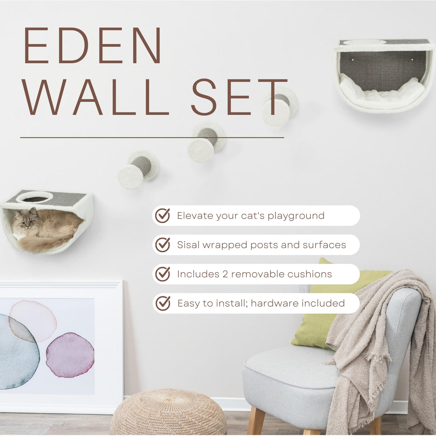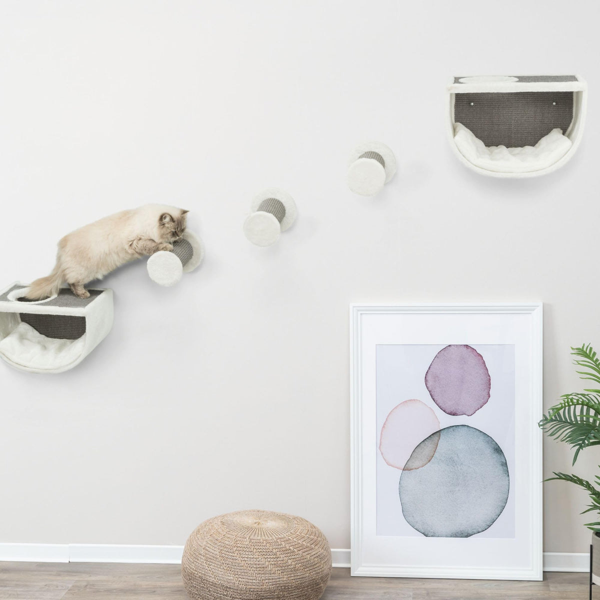 The Trixie Eden Wall Mount Cat Tree Set Is The Latest In Cat Tree Design. Elevate Your Feline Friend And Reclaim Your Floor Space With This Great Space-Saving Lounging Set - Ideal For Small Or Modern Spaces. Each Of Our 3 Steps Are Wrapped With Natural, Durable Sisal To Engage Your Frisky Feline. Our 2 Plush Lined Condos Are Topped With A Sisal Scratching Surface, Providing More Alternative Scratching Surfaces Other Than Your Fine Furniture. If A Nap Or Place To Hide Is In Order, Each Condo Shelf Has An Opening For Your Kitty To Crawl Inside And Fall Fast Asleep As She Sinks Into The Plush Cushions, Making It The Perfect Retreat. The Removable Cushions Can Be Hand Washed.