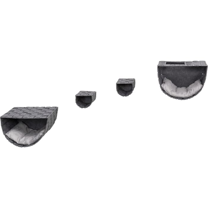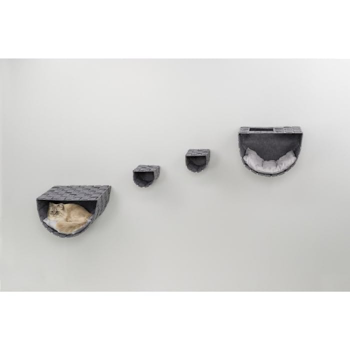 The Trixie Frehi Wall Mount Cat Tree Set Is The Latest In Cat Tree Design. Elevate Your Feline Friend And Reclaim Your Floor Space With This Great Lightweight Space-Saving Lounging Set - Ideal For Small Or Modern Spaces. Each Piece Is Wrapped In Felt For Extra Traction. If A Nap Or Place To Hide Is In Order, Your Kitty Can Crawl Inside Each Condo And Fall Fast Asleep As She Sinks Into The Plush Cushions, Making It The Perfect Retreat. The Removable Cushions Can Be Hand Washed. Suitable For Cats Of All Ages And Activity Levels.
