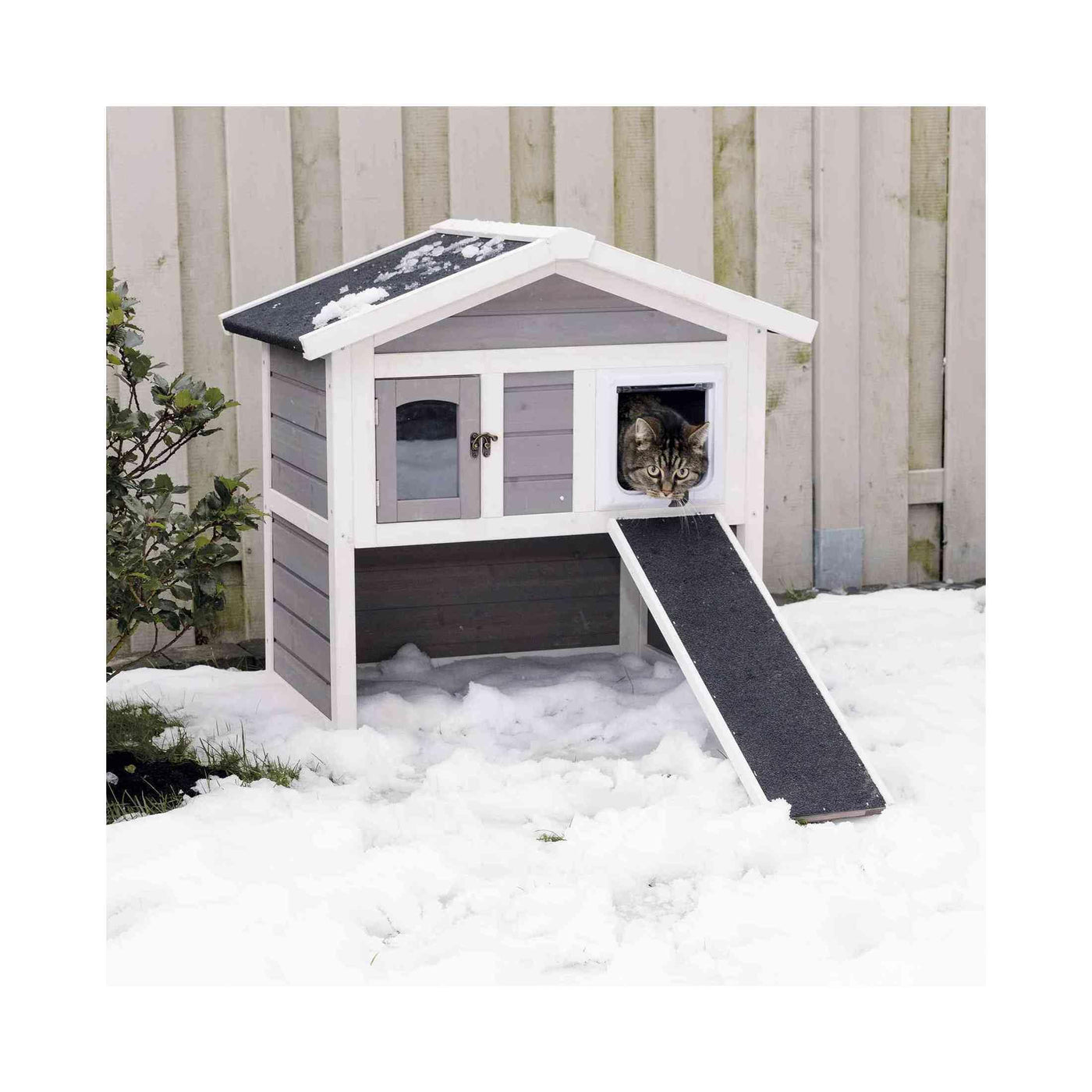 The Trixie Insulated Outdoor Cat House Provides Cats And Other Small Pets With A Secure And Relaxed Environment To Play Or Retreat. Constructed With Foam Insulation And Weather-Treated Non-Toxic Fir Wood Keeps The Weather Out And Provides A Mild Climate Inside. This Adorable Home Will Endure Years Of Use With Very Little Maintenance. Its Functional Design Allows Cats To Lounge Comfortably Underneath The Condo Or Retreat Inside For A Perfect Get-Away. The House Features 3 Exit Points So Your Feline Friend Can Sneak Out Whenever They Please. The Elevated Foundation Promotes Air Circulation And Protects Your Cat From Ground Chill And Wet Conditions.