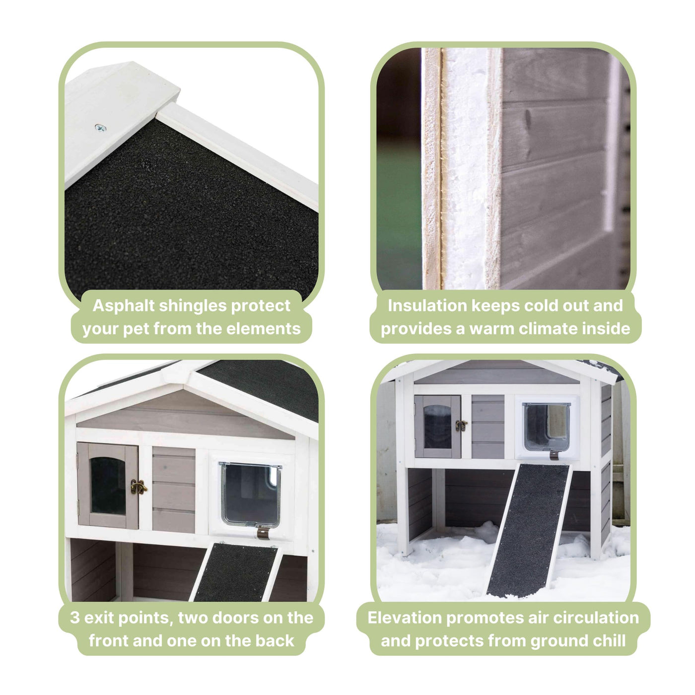 Trixie Insulated Outdoor Cat House, Weatherproof 2-Story Cat Home With A Ramp, 2 Covered Openings, Spacious Outdoor Shelter To R