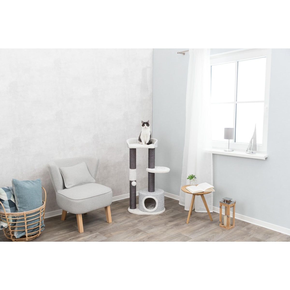 Trixie Pilar Cat Scratching Post 39.4 Inch - With Durable Sisal Rope (Gray) And Condo, Two Platforms, Top Platform With Backrest