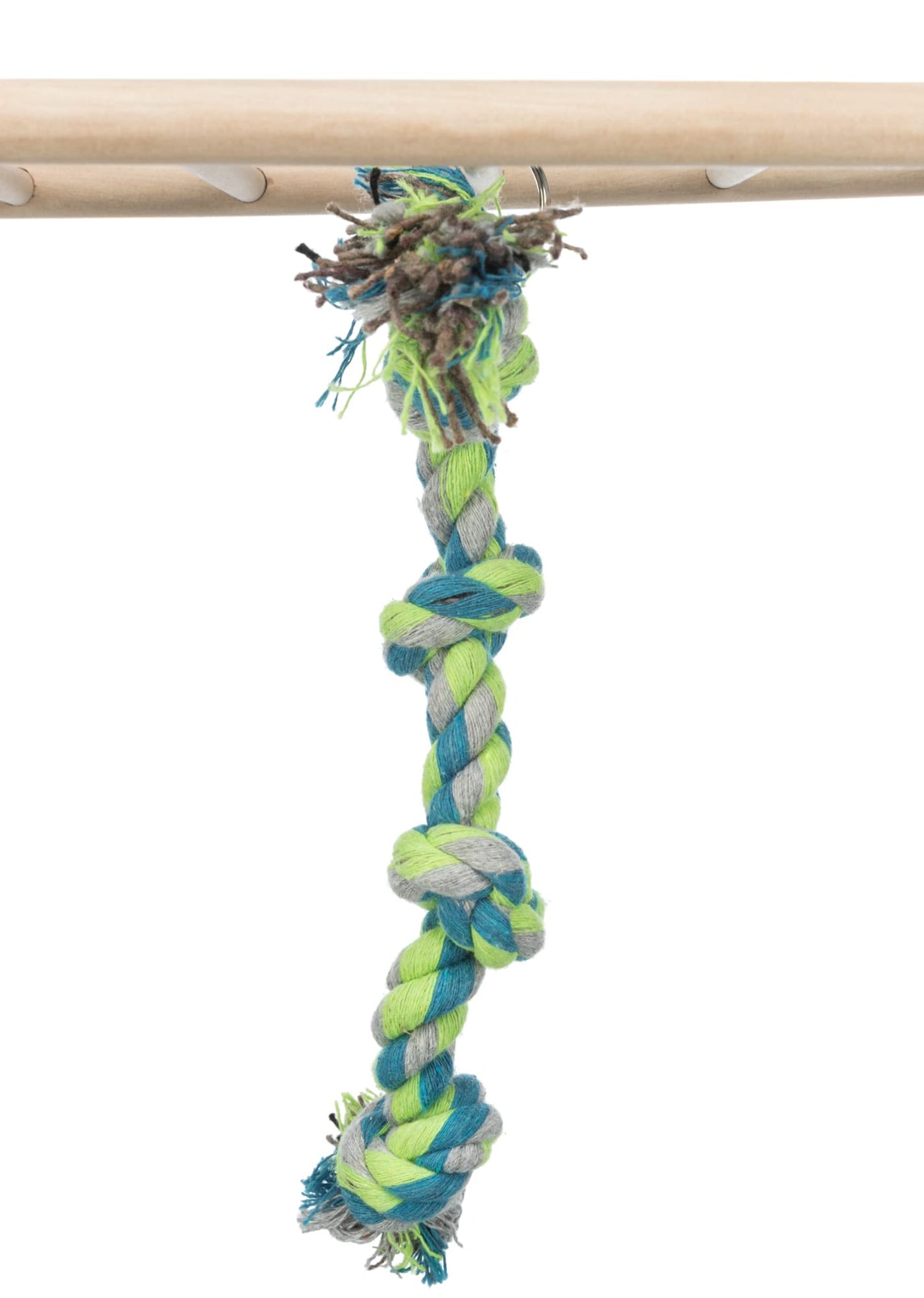 Q: Is the material used in the suspension bridge safe for my pets?A: Yes, the TRIXIE Suspension Bridge is made from safe chewing materials, promoting dental health while ensuring your pets can enjoy playtime without risk.