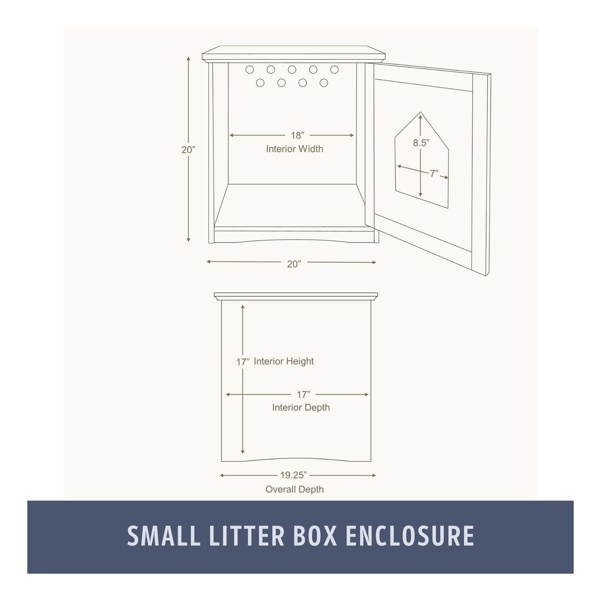 Q: What are the dimensions of the TRIXIE Small Furniture Litter Box Enclosure?A: The TRIXIE Small Furniture Litter Box Enclosure measures 19.25 inches in depth, 20 inches in width, and 20 inches in height, making it a compact yet spacious option for your cat.