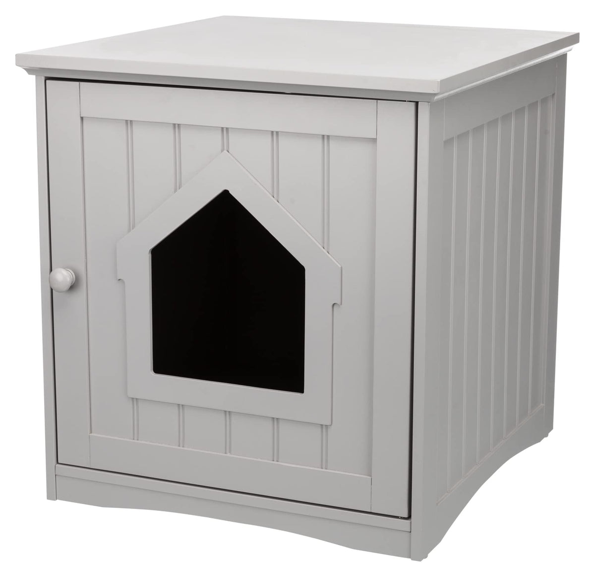 Trixie Small Furniture Litter Box Enclosure (Gray), Hidden Litter Box For Cats, Classic Style & Big Front Door For Easy Cleaning, Large Hole For Convenient Entry, Use As Side Table Or Nightstand