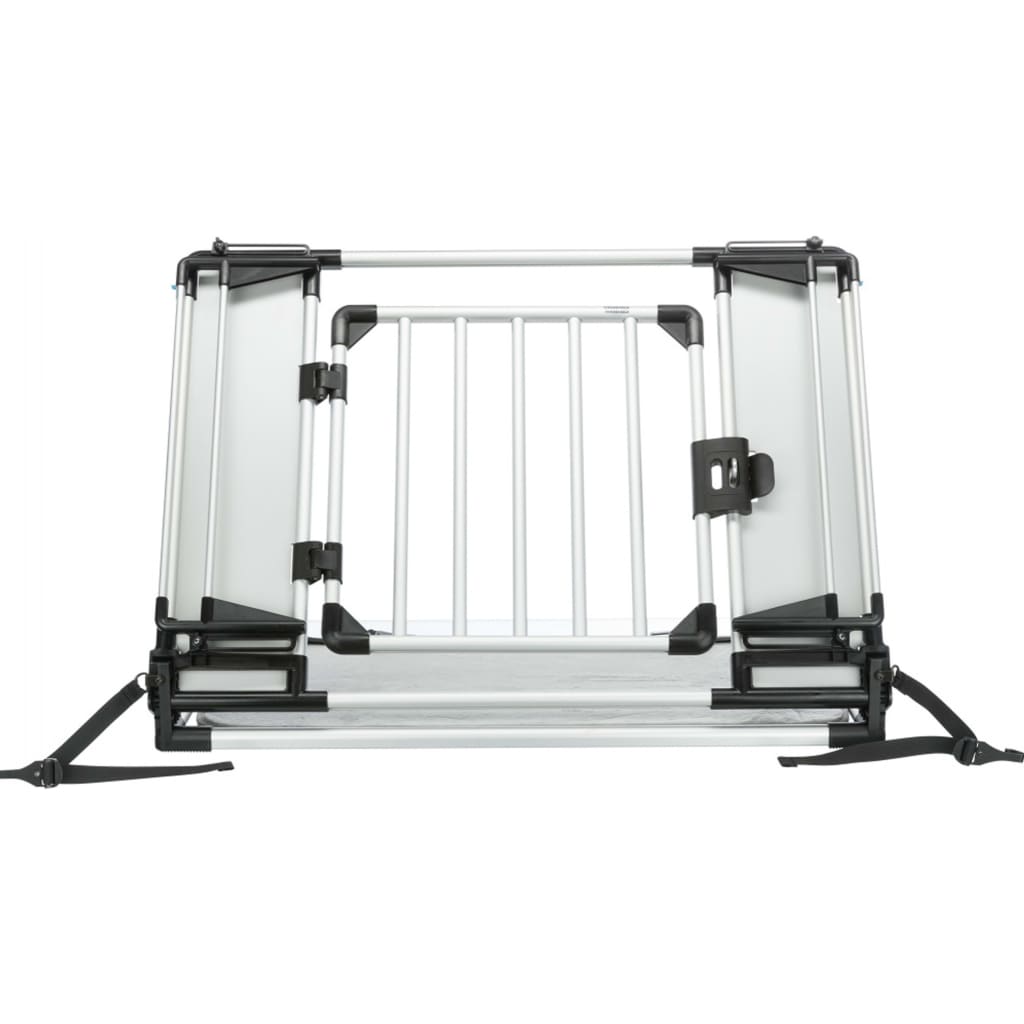 Q: What materials are used in the construction of the Trixie Car Barrier?A: The Trixie Car Barrier is made from a combination of aluminum and plastic, providing durability and strength while remaining lightweight for easy handling.