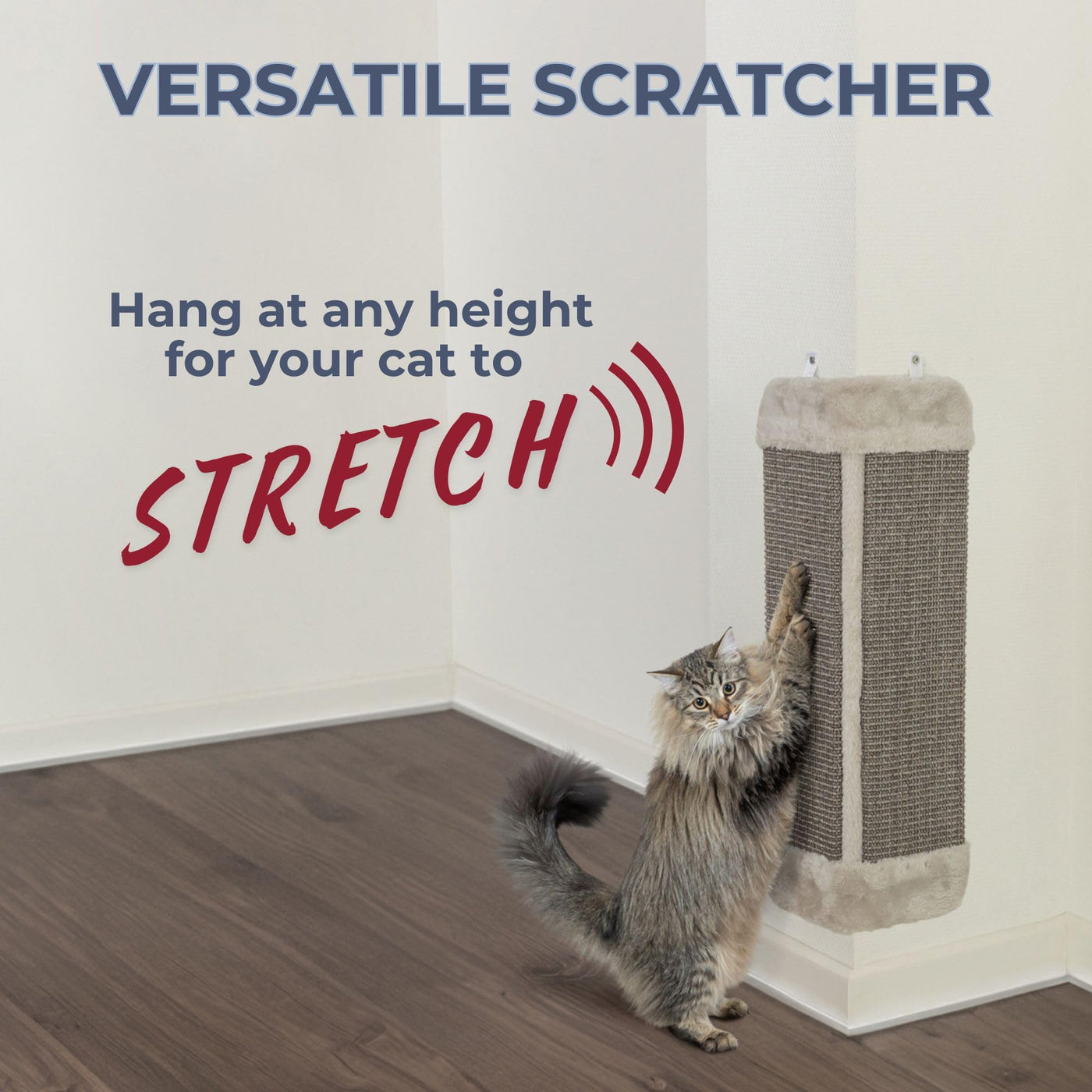 Q: How does the TRIXIE Wall Mount Scratching Board protect my furniture?A: The TRIXIE Wall Mount Scratching Board provides a designated scratching surface that satisfies your cat's natural instincts, keeping them away from your furniture and carpets. By offering a durable sisal surface, it redirects scratching behavior, helping to preserve your couches and chairs.