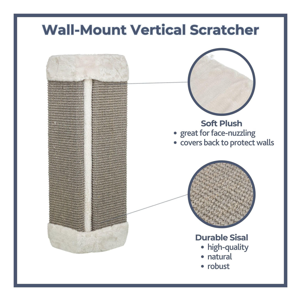 TRIXIE Wall Mount Corner Sisal Scratching Board : The Purr-fect Solution for Feline Fitness and Furniture ProtectionTired of your cat clawing your furniture and carpets? Looking for a stylish and space-saving solution to keep your feline friend happy and healthy? Look no further than the TRIXIE Wall Mount Corner Sisal Scratching Board .Why Choose TRIXIE? Protect Your Furniture: This innovative wall-mounted scratcher provides an irresistible alternative to your precious couches and chairs, safeguarding them from your cat's natural scratching instincts. Promote Healthy Claw Care: The durable sisal scratching surface encourages your cat to scratch regularly, keeping their claws trimmed and preventing ingrown nails. Space-Saving Design: This vertical scratcher maximizes your home's space, making it perfect for small apartments or rooms with limited floor space. Stylish and Versatile: The sleek design complements any home decor, while the adjustable height and angle cater to your cat's preferences.How to Use: Choose the Perfect Spot: Select a sturdy wall corner that is easily accessible to your cat. Secure the Scratcher: Follow the easy-to-understand instructions to mount the Scratcher to the wall securely. Encourage Your Cat: Use a catnip or a favorite toy to entice your cat to try the new scratching post. Monitor and Adjust: Regularly check the scratcher for wear and tear, and adjust the height and angle as needed.Give your cat the ultimate scratching experience with the TRIXIE Wall Mount Corner Sisal Scratching Board . It's the purr-fect way to keep your feline friend happy, healthy, and out of trouble!