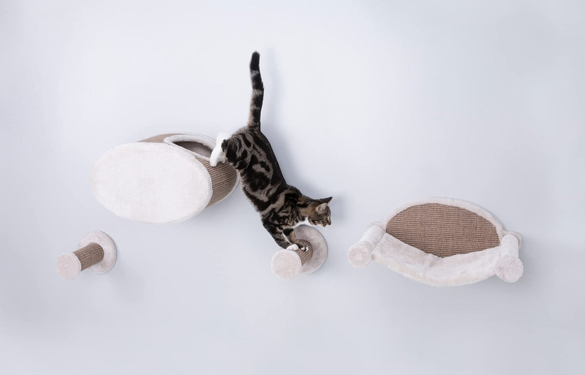 Trixie'S Wall Mount Systems Are The Latest In Cat Tree Design. This Great Space-Saving Lounging Set Is Ideal For Small Or Modern Spaces. More Importantly, Cats Will Love The Ability To Explore New Heights With Two Perches, A Plush Lined Condo And Ultra-Plush Hammock. Each Item Is Also Wrapped With Natural, Durable Sisal To Engage Your Frisky Feline. Mix And Match To Create The Perfect Solution. Plush Lined Condo With Removable Cushion That Can Be Machine Wash, Gentle Cycle (16.5 X 11 X 11.25 Inches). Hammock (22.75 X 11 X 12.75 Inches). Step (7 X 7 X 8.5 Inches). Rear Side Of Each Item Covered With Plush. Assembly And Installation Required.