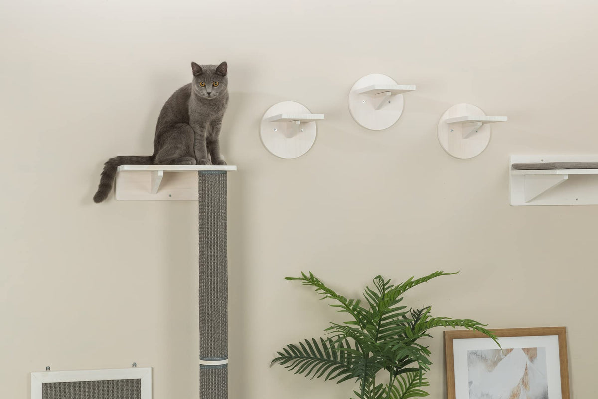 Trixie Wall Set 1, Indoor Wall Mounted Cat Scratching Post For Elevated Fun, Climb To Perch, Jumping Platform, Gray