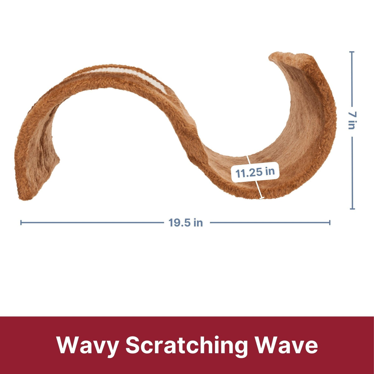 Q: What are the dimensions of the TRIXIE Wavy Cat Scratching Surface?A: The TRIXIE Wavy Cat Scratching Surface measures 11.25 x 19.5 x 7 inches, making it a compact yet spacious option for your feline friend.