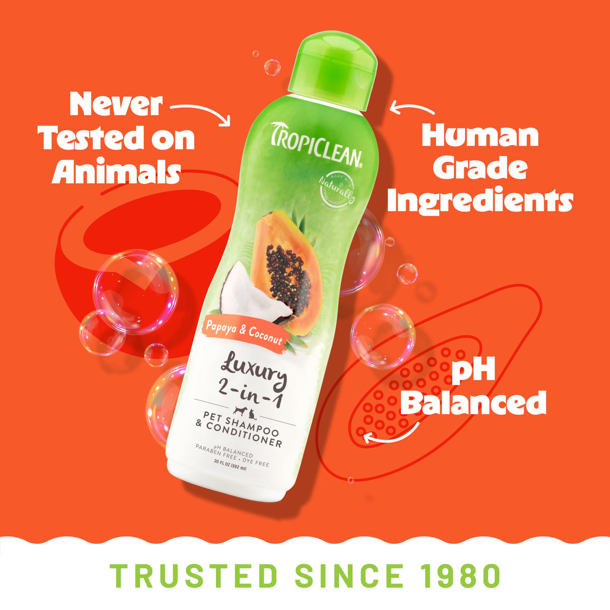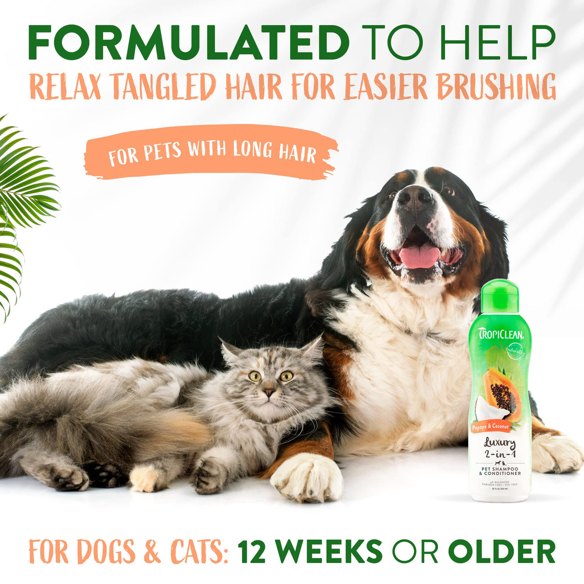 Tropiclean 2-In-1 Dog Shampoo And Conditioner, Moisturizing Dog Detangler, Puppy Safe, Made In The Usa, Papaya Scent, Cat & Kitten Safe, 20Oz.