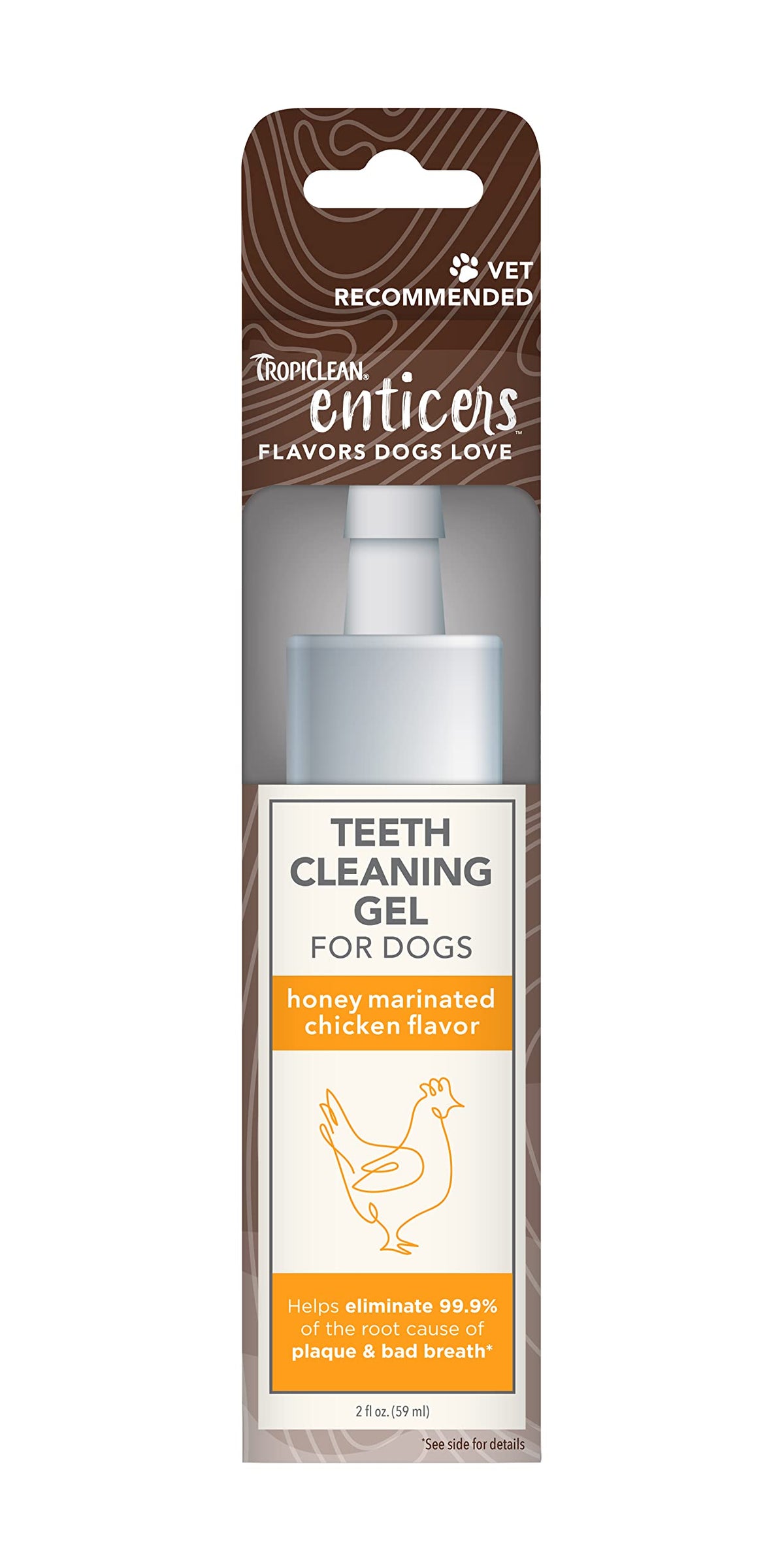 TropiClean Enticers Dog Teeth Cleaning Treat Gel | Honey Chicken Flavored Dog Toothpaste Alternative| 2 oz