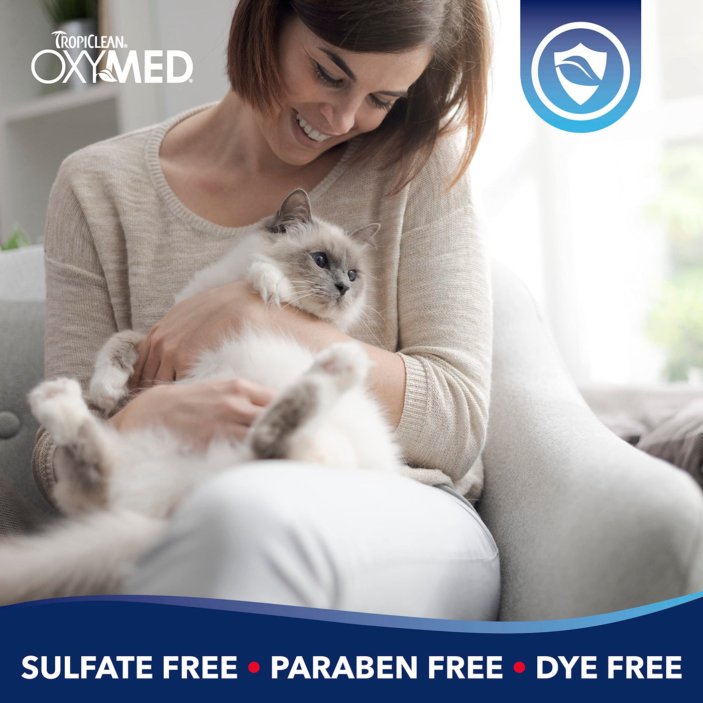 TropiClean Oxymed Waterless Cat Shampoo and Conditioner | A No-Rinse Cat Wash for Hairball Relief | 7.4 oz