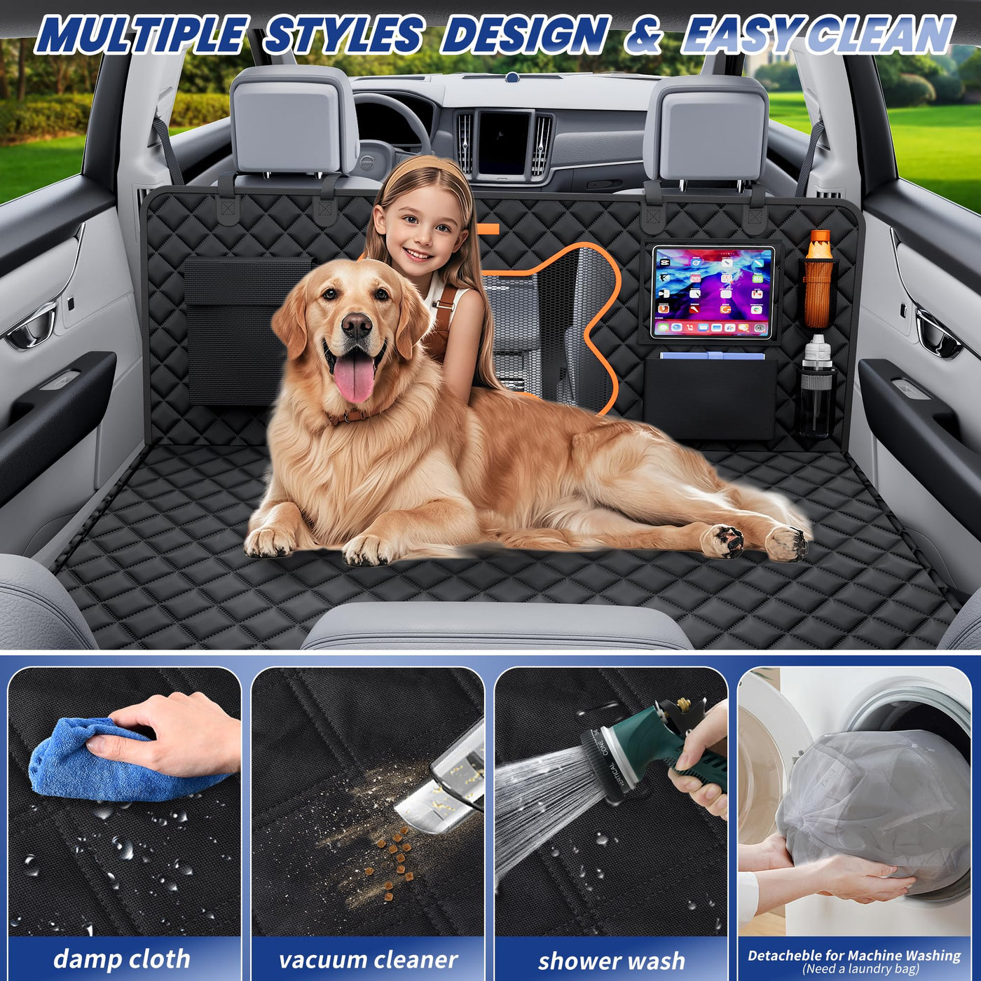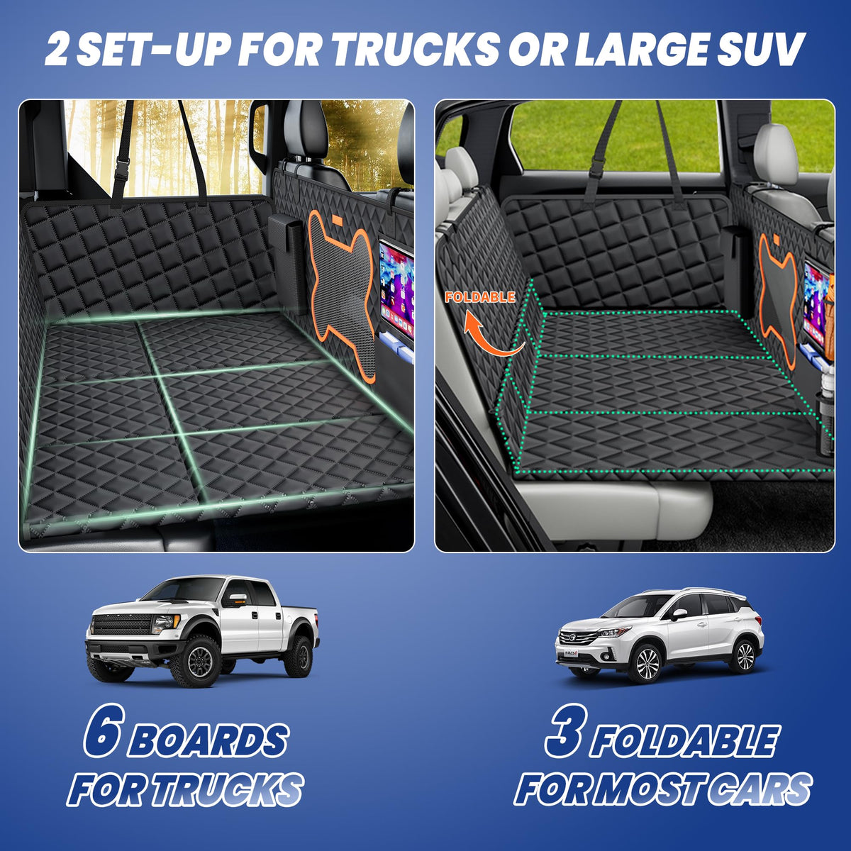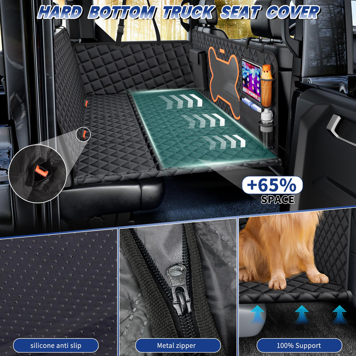 Truck Dog Seat Cover Back Seat, Backseat Extender Hard Bottom Heavy-Duty 400Lbs Holding For Larger Dogs Anti-Slip Waterproof Pet