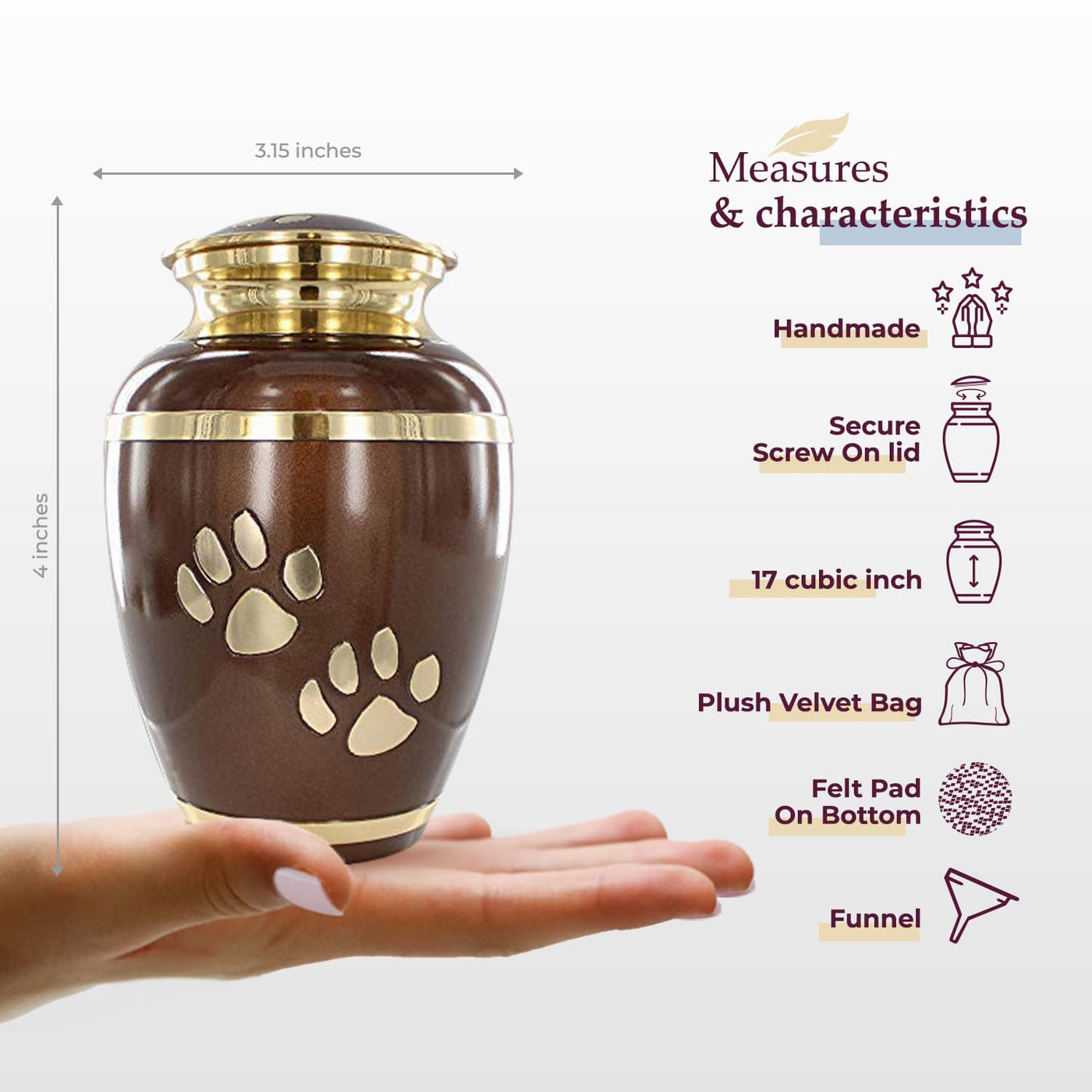• 4 Inches Tall Holds Remains Up to 17 Lbs