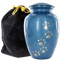Trupoint Memorials Small Pet Urn For Dogs And Cats Ashes, Paws Print Blue Cremation Urns For Pets Up To 17 Lbs