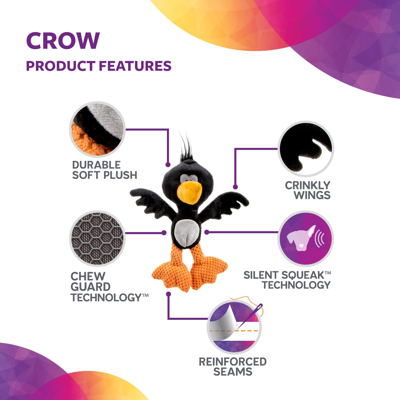 Trustypup Strong 'N Silent Birds Crow Silent Squeak Plush Dog Toy, Chew Guard Technology - Black, Large