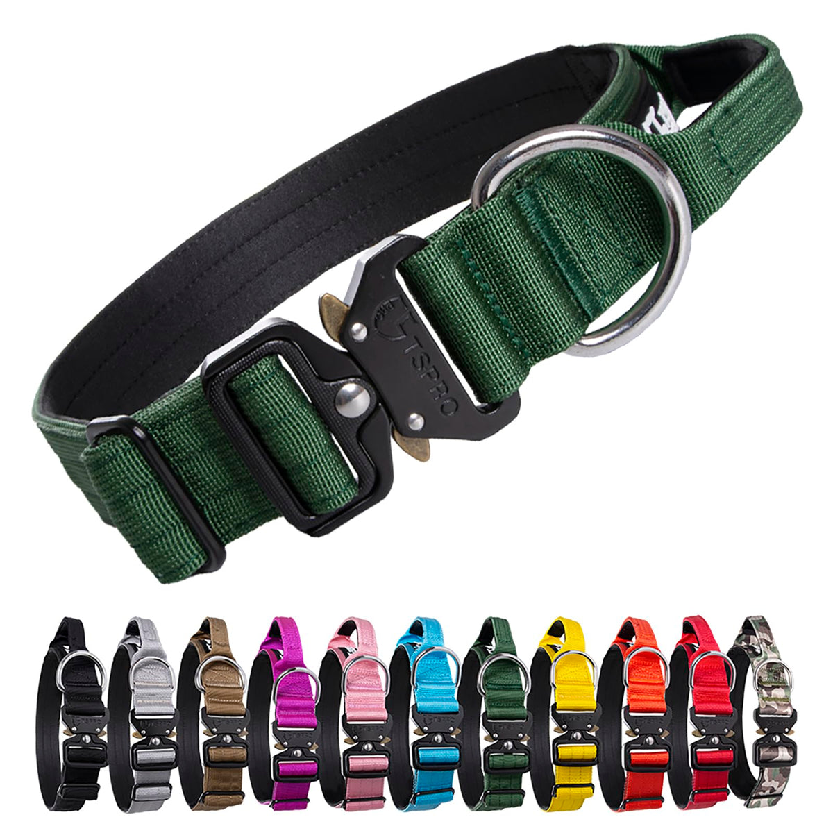Product Feature: Material:Genuine Nylon Belt, Durable Neat Stitching And Soft Padded Lining Inside Prevent Chafing For Your Dogs Skin And Hair With A Comfortable Fit Fully Adjustable Belt Size Adsutment Is Done By A Quick-Release Metal Buckle Depending On Your Dogs Neck Size Premium Dog Collar With Padded Handle Is Great When You Need To Keep Your Dog Closer To Traffic Or Walking Or Training Through The Crowds A D-Ring Can Be Attached Dog Leash Colour: Blackkhakigreenredorangeyellowbluepinkpurplesilver Military Greennote: Please Measure Your Dogas Neck And Keep 2 Finger Gap Will Keep Your Dog Feel Most Comfortable Easy To Cleaneven If Your Dog Is Attracted To Puddles And Mud,The Dog Collar Is Easy To Clean Size (Inches) Size M Length:145-18(Adjustable) Size L Length:185-255(Adjustable) Package Included Dog Collar X1Small Business