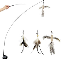 ?Suction Cup Design?The Suction Cup Is Sticky Tightly And Easy To Install On The Smooth Surface, Such As Window, Marble, Wooden Floor, Doors(Not Stick To Wall, Carpet). It Achieves Automatically Entertaining Cats. This Cat Toy Unlock Two Ways To Tease Cats: ? You Can Either Hold The Cat Wand To Interact With Cats. ? When Youre Tired Or Busy, Insert The Cat Wand Into Suction Cup, It Will Be A Automatic Cat Wand Toy. ?Wire Fishing Rod Design? This Cat Fishing Rod Toy Is Very Light, Flexible And Easy To Store. The Fully Extended Cat Toy Stick Is Long Enough (35 Inches) To Cover A Lot Of Play Space And It Really Gives Your Cat A Workout. And It'S Light, So Teasing Cats Is No Longer A Tough Job For You. ?High Quality And Safety? Feathers Are Made Of Natural Materials. Our Clasps Are Easy To Open And Close To Change Feathers. (Package Includes: 1 Cat Wand + 3 Feather Refills) This Feather Cat Toy Can Last Longer. ?Exciting Cat Entertainment?Cats Are Addicted To Chase Games! Combining Wire And Feathers Into A Great Cat Toy, This Cat Toy Is Irresistible For Cats! Swing The Feather ''Bait'' To Get The Cat Excited, Trigger The ''Hunting Instinct'', Let Them Run And Jump Like Wild Animals, And Make Your Cat Go Crazy With Joy! ?Classic And Practical Interactive Cat Toy?This Cat Stick Toy Will Help Your Indoor Cat To Flip, Jump, Pounce, Chase. Great Way To Get Your Cat Energized And Get More Exercise To Keep Your Cat Free And Happy! Suitable For Kittens And Cats Of All Ages And Sizes!