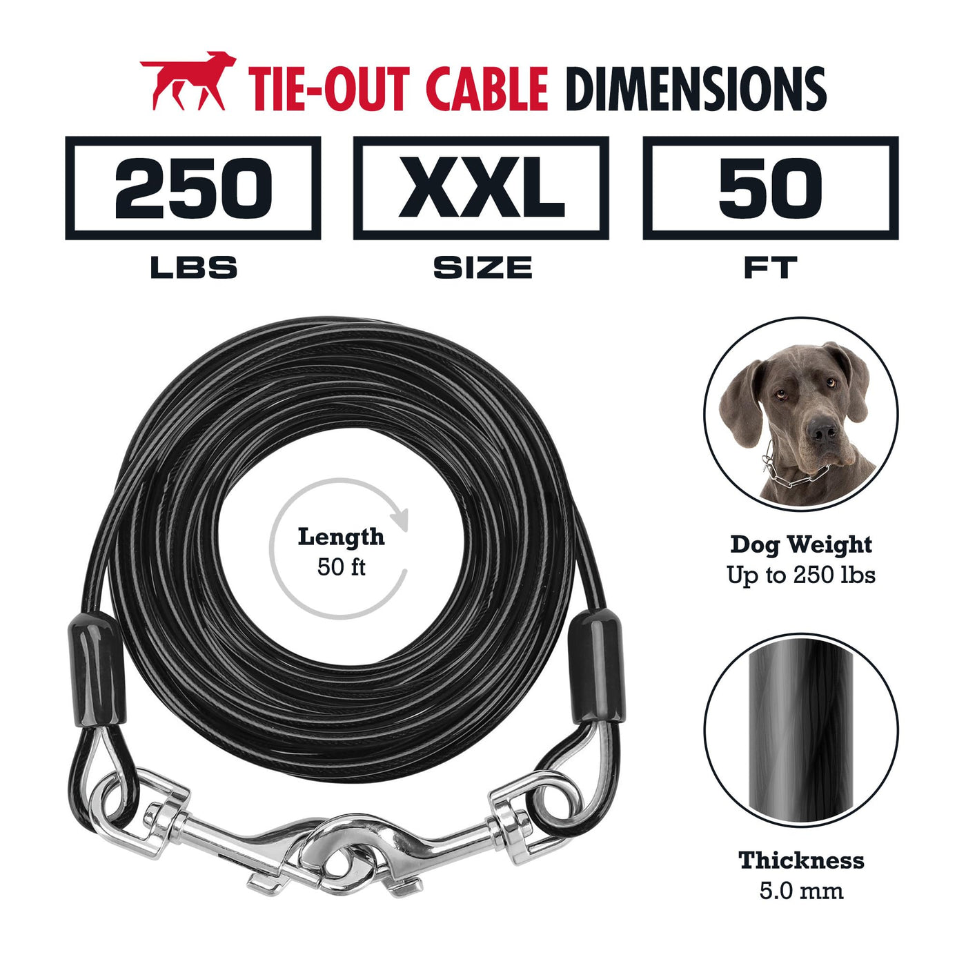 Tuff Pupper Dog Tie Out Cable 50 Feet | Dog Runner Cable For Yard 50 Ft | Heavy Duty Lead | Water & Rust Resistant Industrial St