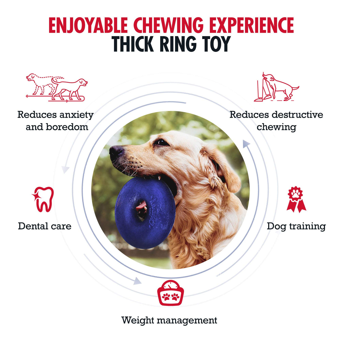 We understand the importance of keeping your pup active, strong, and healthy. That's why we created the Tuff Pupper Dog Toy Ring. Our strong rubber toys for dogs are another high-quality addition to the Tuff Pupper brand of dog equipment and dog toys for large dogs.