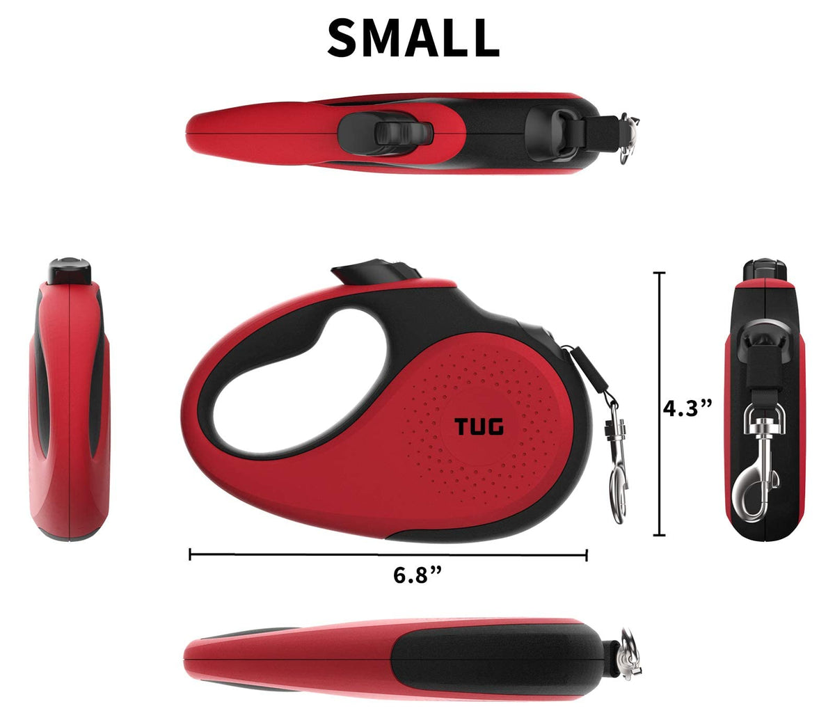 Tug 360 Tangle-Free Retractable Dog Leash With Waste Bag Dispenser (Small, Red)