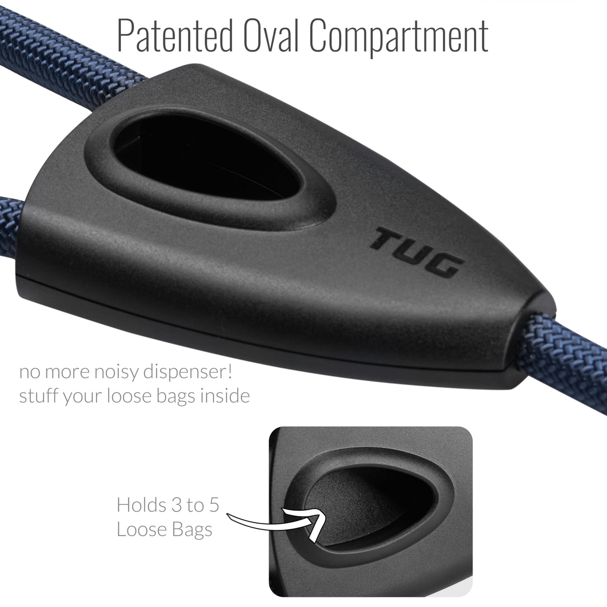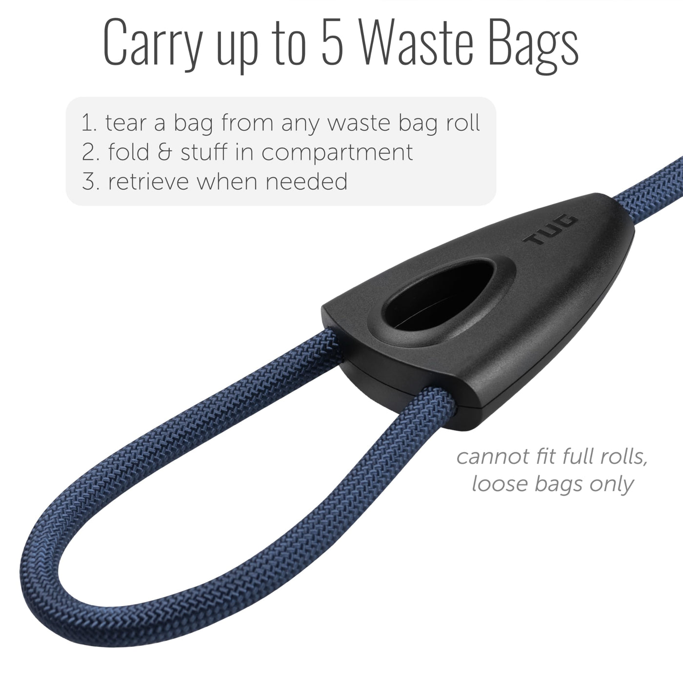 Tug 5 Ft Dog Leash With Integrated Oval Dispenser Holds 3 Loose Dog Waste Bags (Blue)