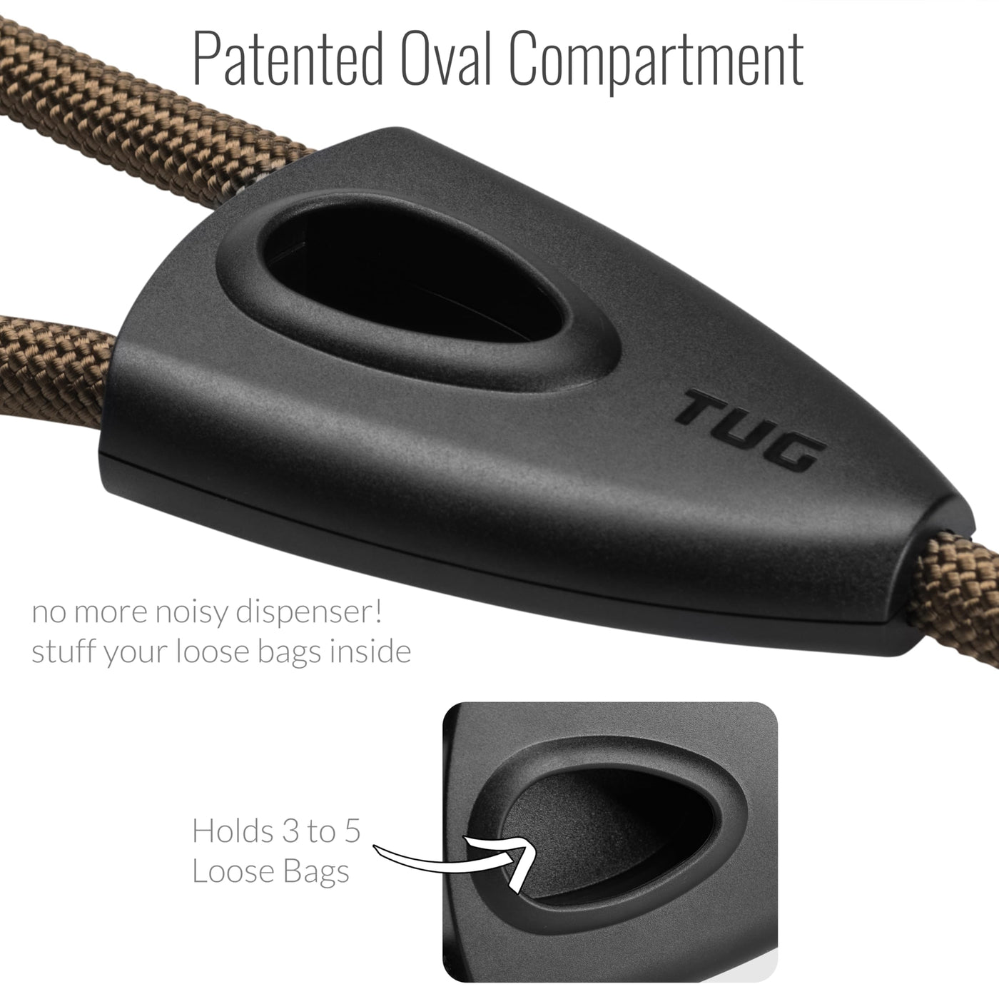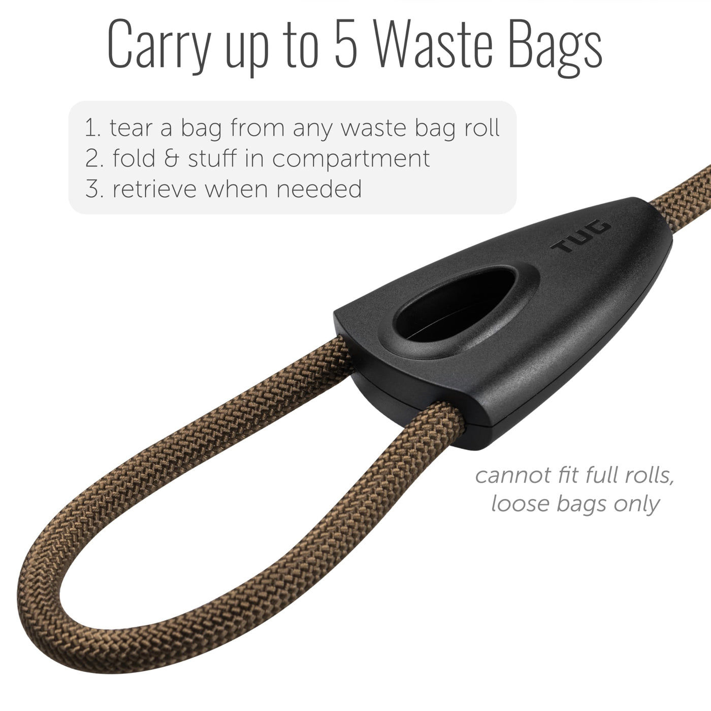 Tug 5 Ft Dog Leash With Integrated Oval Dispenser Holds 3 Loose Dog Waste Bags (Green)
