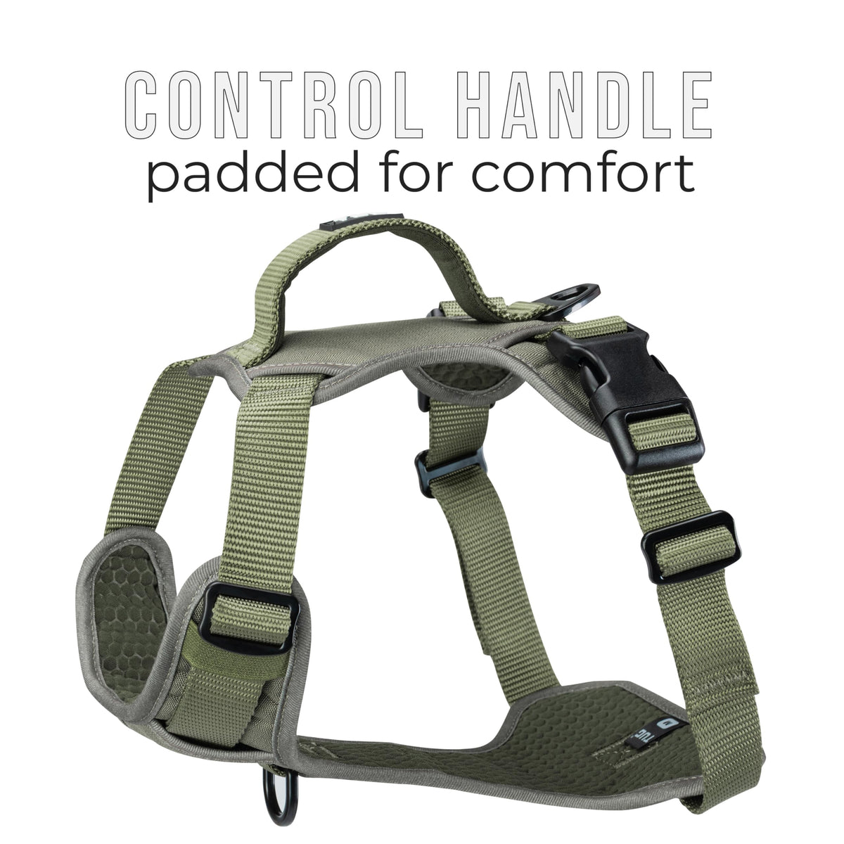 Tug Dog Harness With 2 Leash Connection Points | Adjustable, Padded, Lightweight | Handle On Back | No-Pull Front Clip (Xl, Gree