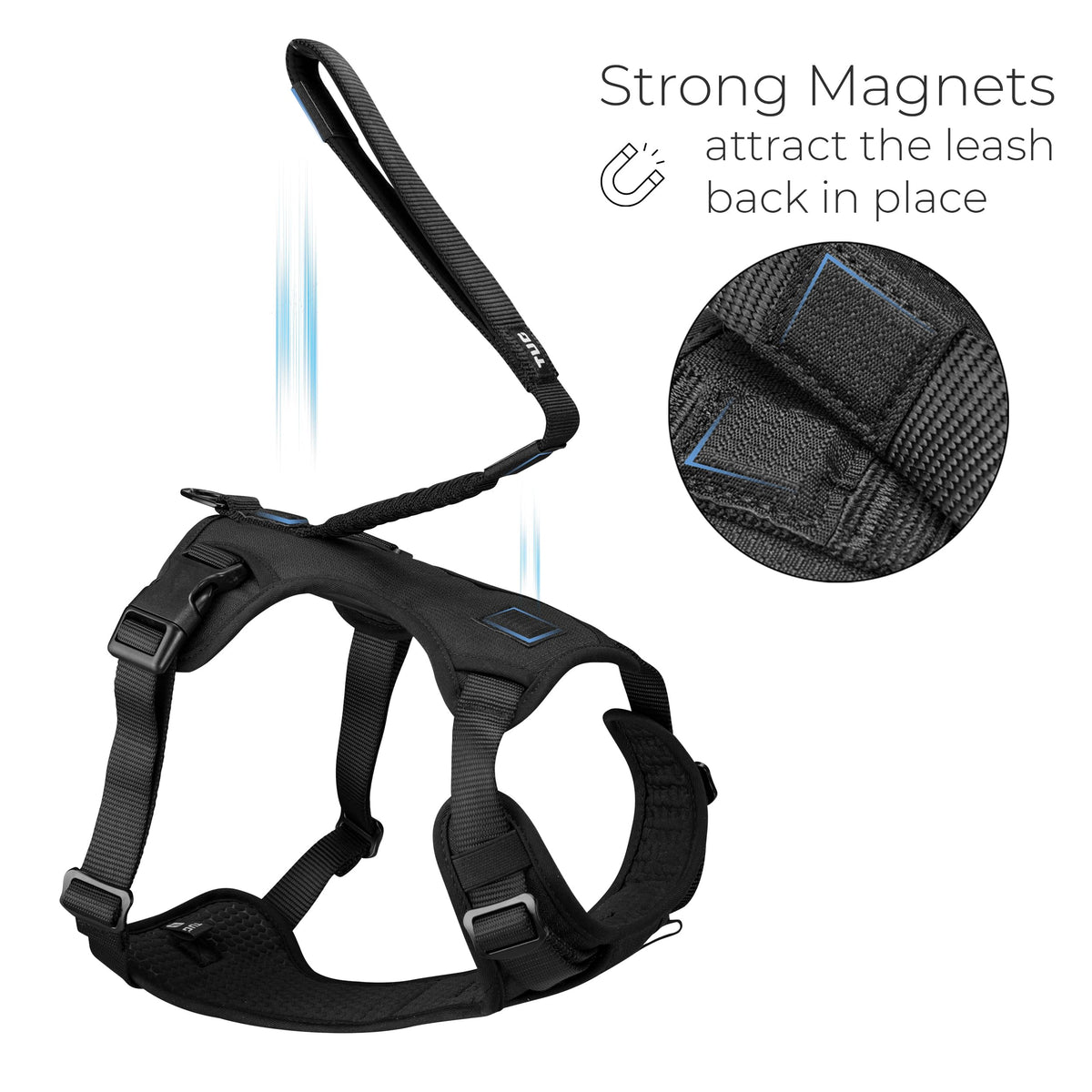 Tug Grab Dog Harness | Integrated Traffic Leash Magnetically Attached For Quick Control (Medium/Black)