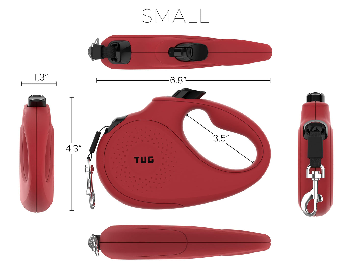 Tug Monochrome 360 Tangle-Free Retractable Dog Leash | 16 Ft Strong Nylon Tape (Small, Red)