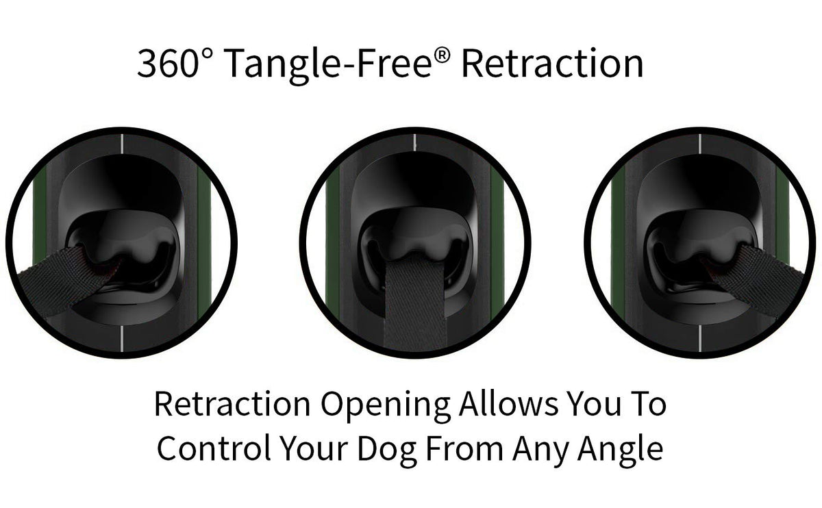 TUG Oval 360 Tangle-Free Retractable Dog Leash | Flashlight Included | Integrated Waste Bag Dispenser Pocket (Medium, Green)