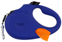 Tug Oval 360 Tangle-Free Retractable Dog Leash With Integrated Waste Bag Dispenser (Large, Blue)