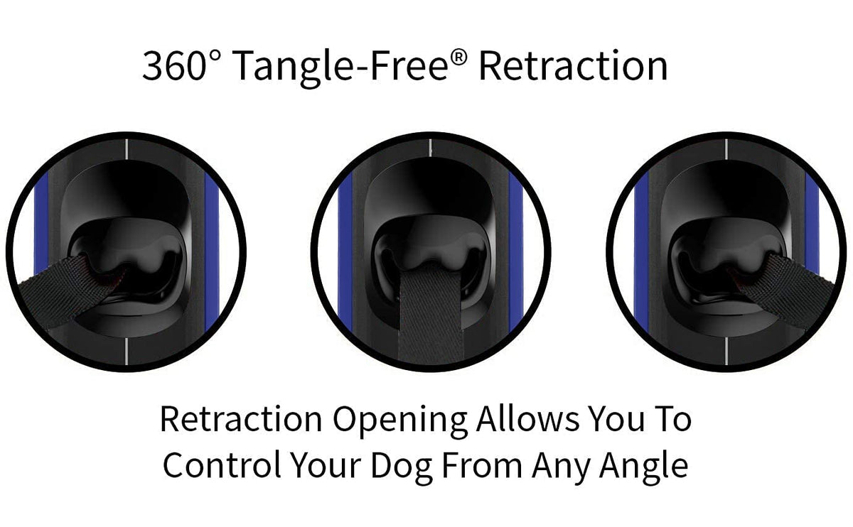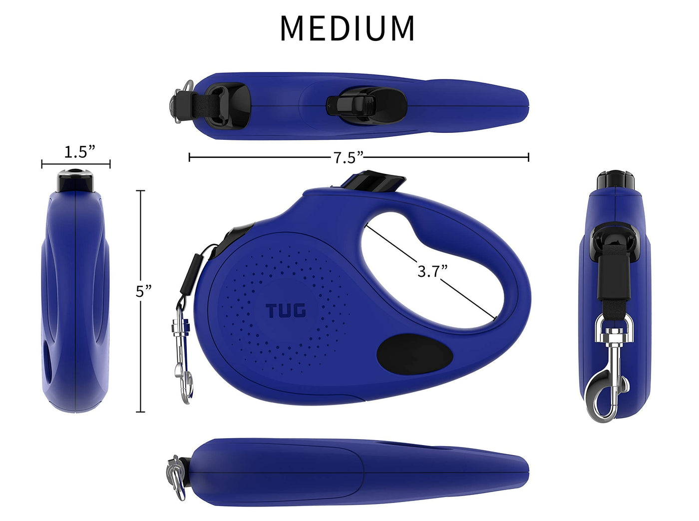 Tug Oval 360 Tangle-Free Retractable Dog Leash With Integrated Waste Bag Dispenser (Medium, Blue)