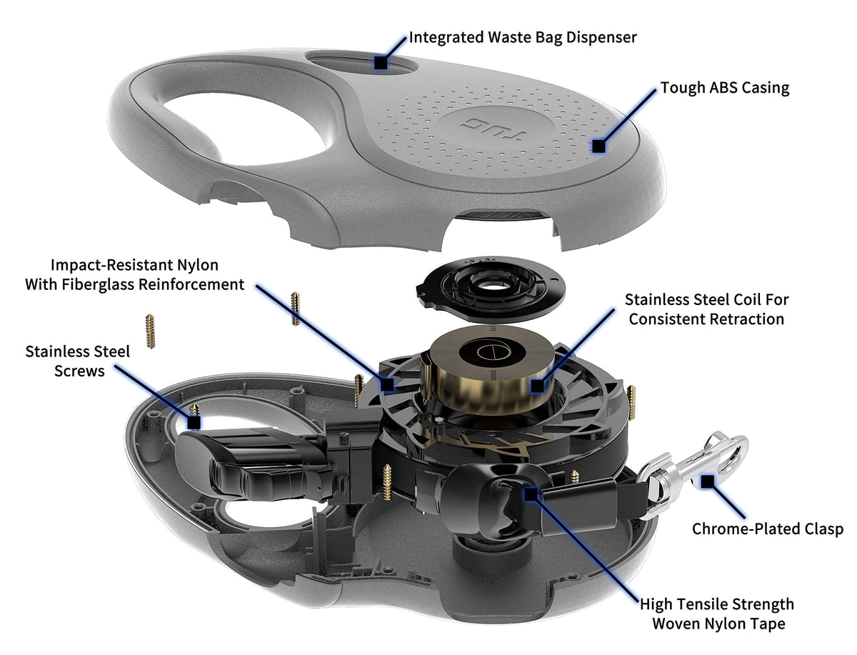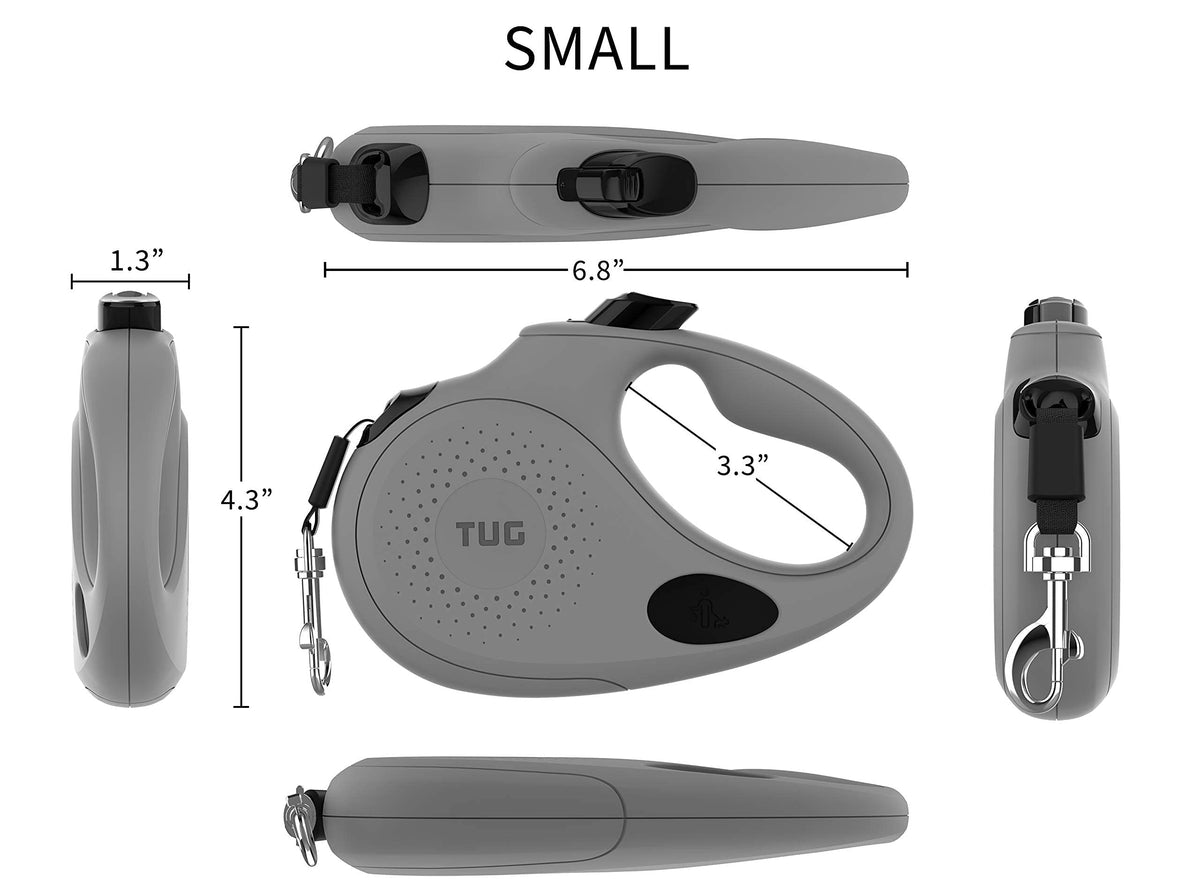 Tug Oval 360?Tangle-Free Retractable Dog Leash With Integrated Waste Bag Dispenser (Small, Grey)