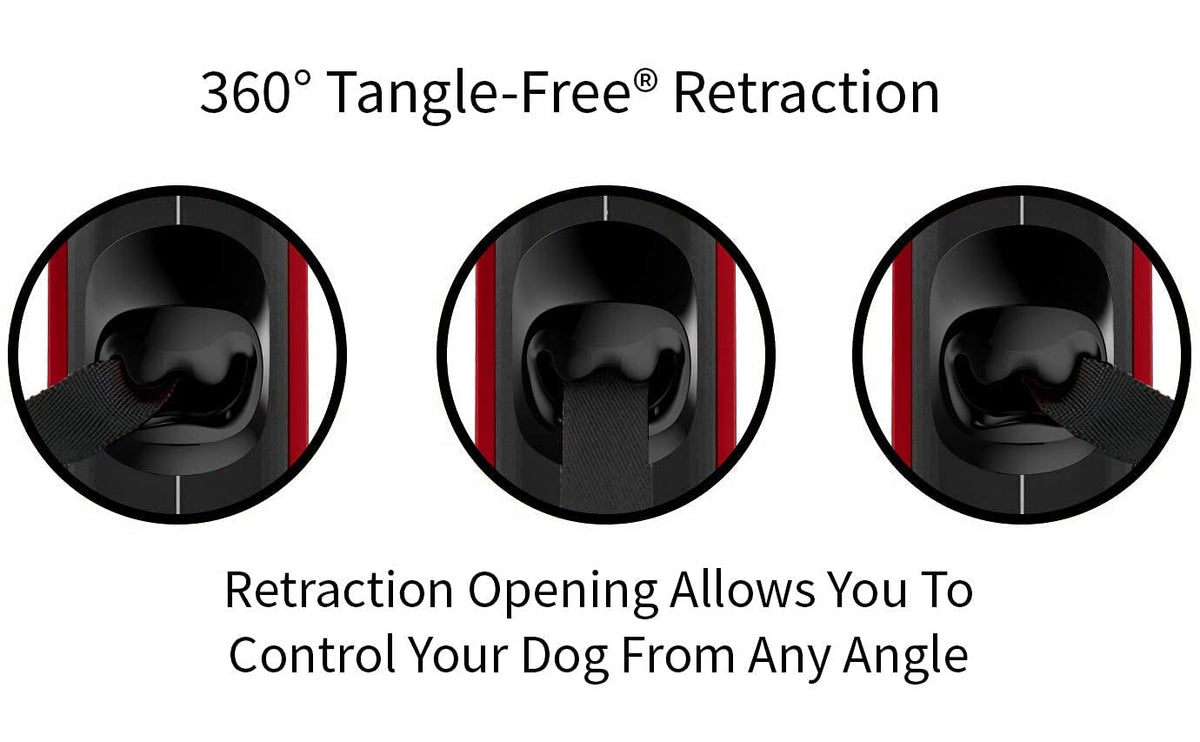 Tug Oval 360?Tangle-Free Retractable Dog Leash With Integrated Waste Bag Dispenser (Small, Red)