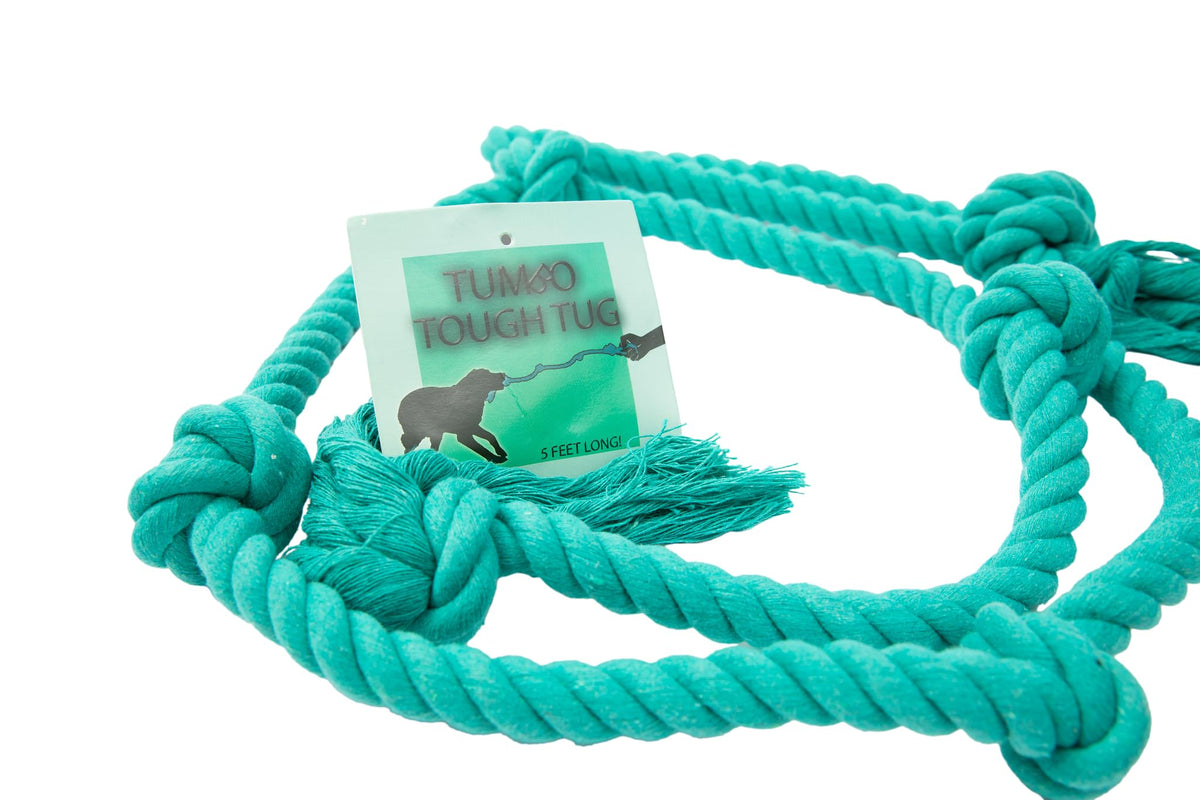 Tumbo Tough Tug Rope Dog Toy - (5 ft Long Strong and Durable Rope Pull Toy with Handle) TUG of WAR Dog Toy (Bahama Blue)