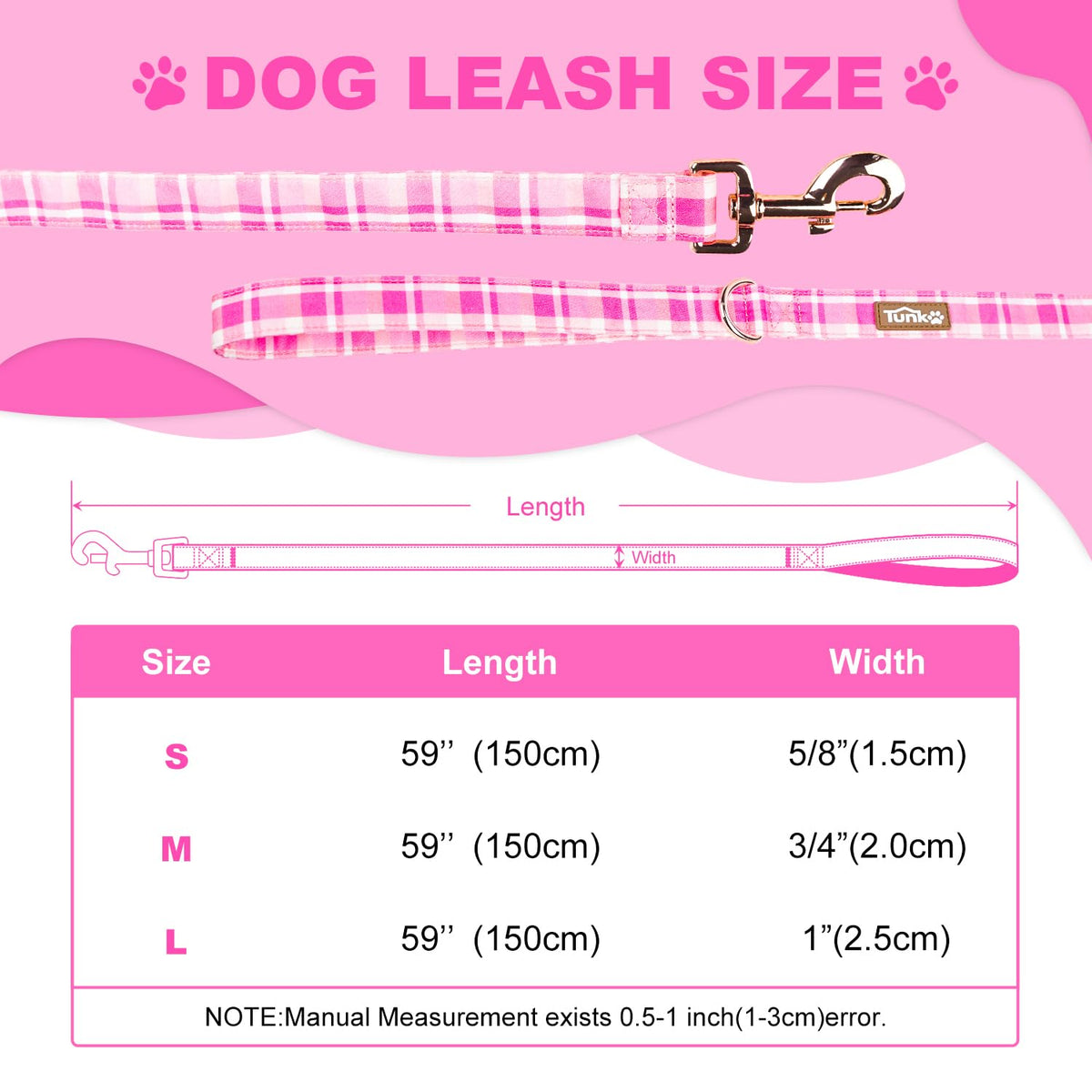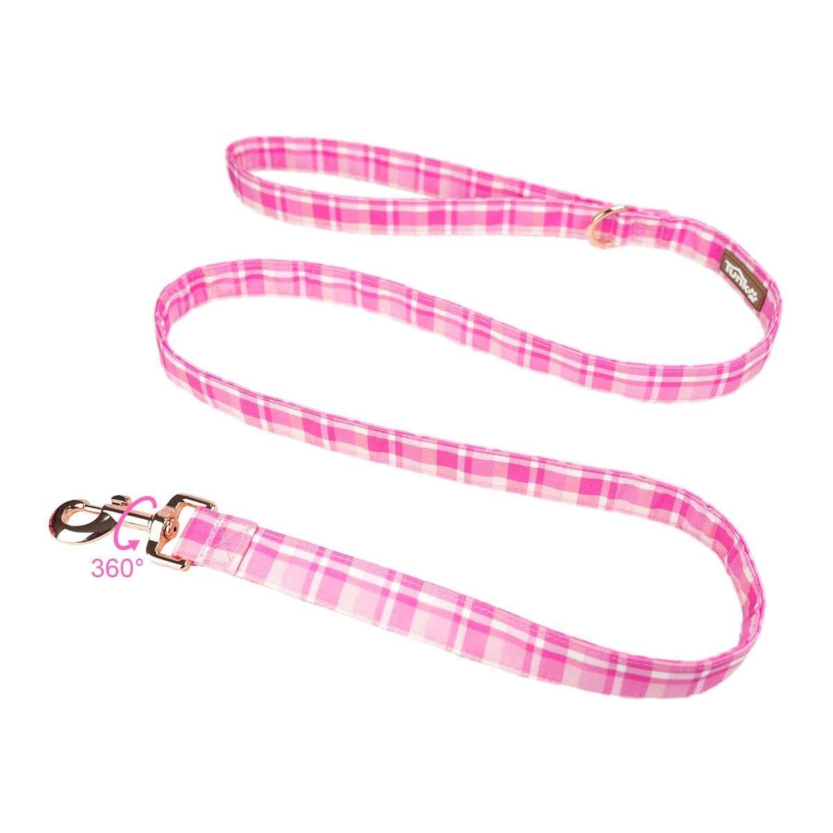 Tunkoo Pink Plaid Dog Leash With Metal Buckle - Unmatched Quality In Small Medium Large Sizes For Pet Daily Walking, S
