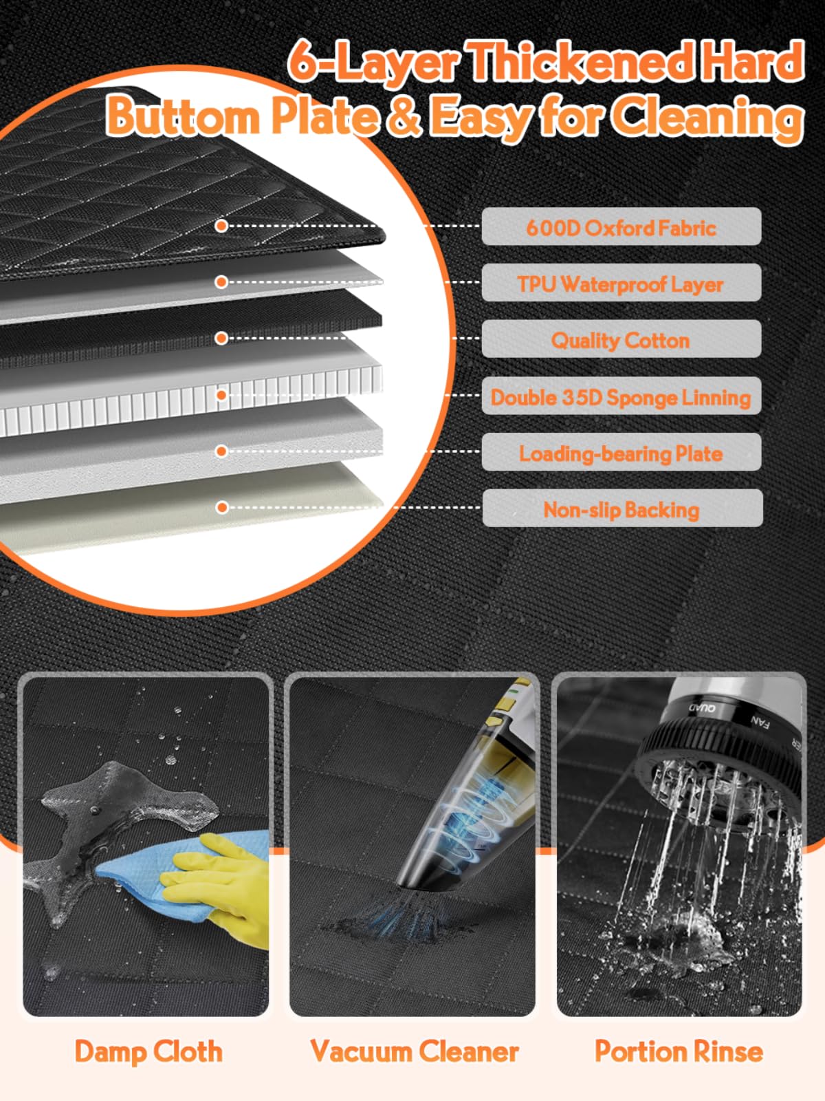 Ultimate Dog Car Seat Cover With Hard Bottom - Heavy-Duty Backseat Protector & Travel Bed Complete Car Protection System Transform Your Backseat Into A Safe, Comfortable Space For Your Furry Friend! Our Premium Dog Car Seat Cover Features: 6-Layer Waterproof Fabric - Blocks Hair, Mud, Scratches, And Spills 440Lb Weight Capacity - Supports Large Breeds Like German Shepherds Full 360 Coverage - Protects Seats, Doors, Footwells, And Center Console Pet Parent Approved: ''Finally Stopped My Golden Retriever'S Fur From Covering The Entire Car!'' - Michael T. (Verified Buyer) Breathable & Stress-Free Design Mesh Side Windows Allow Eye Contact To Reduce Travel Anxiety Ventilated Hard Bottom Prevents Overheating On Long Trips Anti-Slip Backing Stays Securely In Place During Sharp Turns Smart Travel Features 4 Storage Pockets For Treats, Leashes, Toys, And Waste Bags Removable Honeycomb Board - Machine Washable For Easy Cleaning 3-Second Installation - Universal Fit For Sedans, Suvs, And Trucks Convertible Travel Bed Hard Bottom Converts To A Portable Bed For: Vet Visits Hotel Stays Picnics Effortless Maintenance Daily: Wipe With Towel Or Vacuum Weekly: Machine Wash (Cold Gentle Cycle) Perfect Fit Guarantee Fits Most Vehicles: Sedans (Toyota Camry, Honda Accord) Suvs (Rav4, Cr-V) Trucks (F-150, Silverado) Dimensions: 52''L X 25''W Pro Tips: Use The Side Pockets To Store Motion Sickness Meds Fold Into A Bed For Emergency Roadside Stops The Perfect Gift For Dog Owners Includes: 1X Heavy-Duty Seat Cover 3X Support Boards 1X Storage/Carry Bag Why Choose Us? 440Lb Weight Limit - 2X Stronger Than Standard Covers