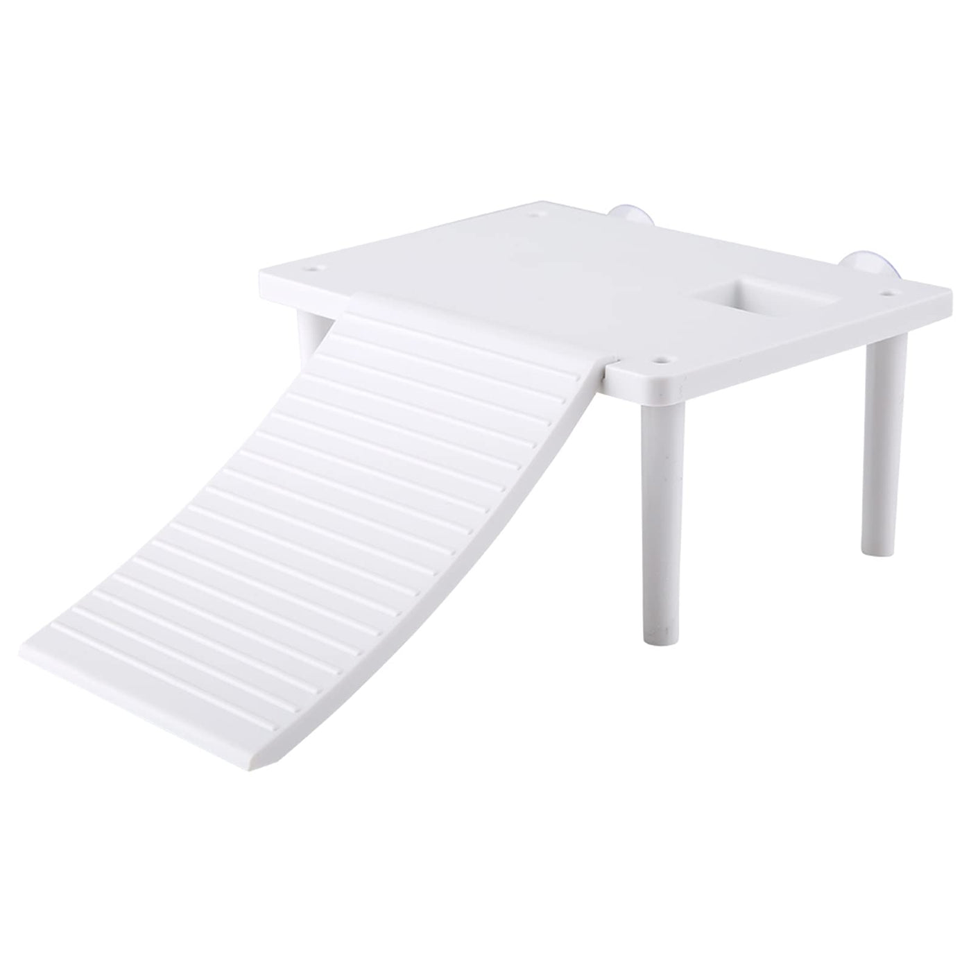 Q: How can I install the Turtle Basking Ramp in my aquarium?A: The Turtle Basking Ramp comes with suction cups that allow for easy mounting on smooth glass or acrylic surfaces. Simply ensure the surface is clear, moisten the suction cups, and press them firmly against the surface to secure the ramp.