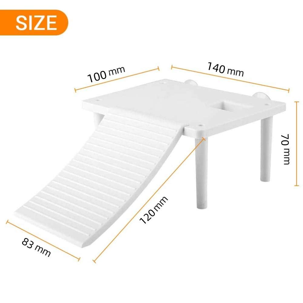 Q: What are the dimensions of the Turtle Basking Ramp?A: The Turtle Basking Ramp measures 14 cm in length, 10 cm in width, and 6.5 cm in height (approximately 5.5 inches by 3.9 inches by 2.5 inches), making it suitable for small reptiles such as turtles and frogs.