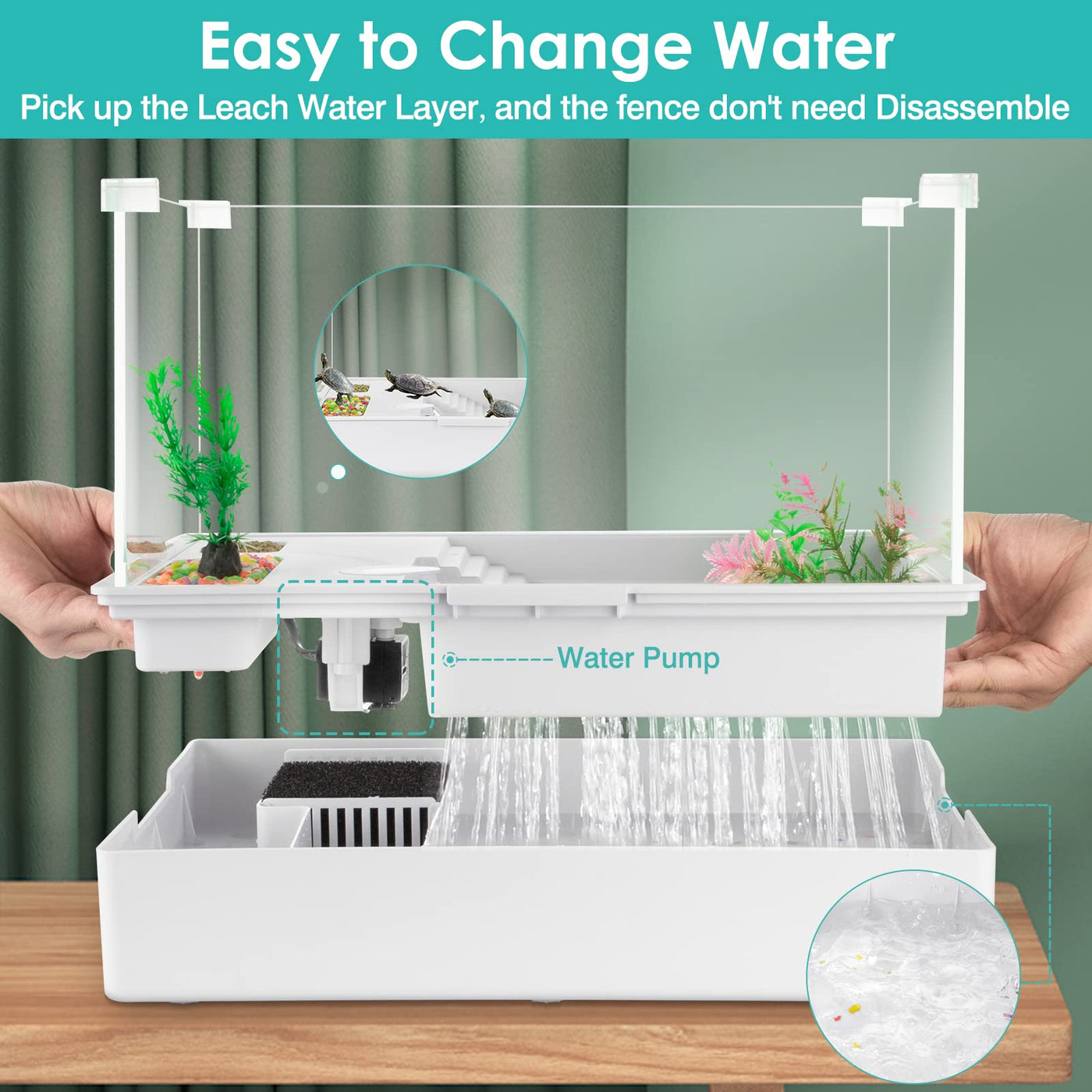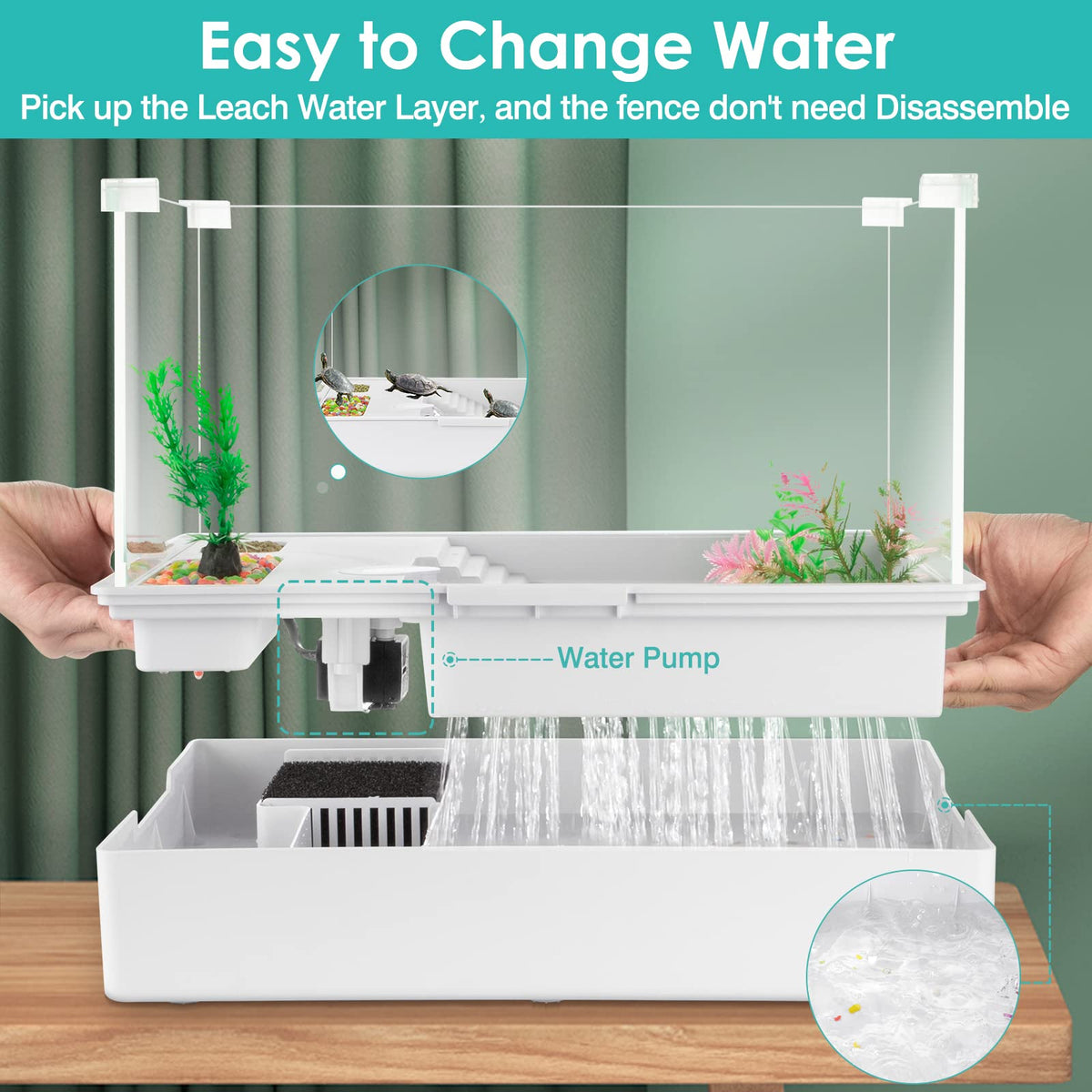 Turtle Tank Aquarium, Tank Terrapin Lake with Water Pump for Pet Turtle Reptile Habitat