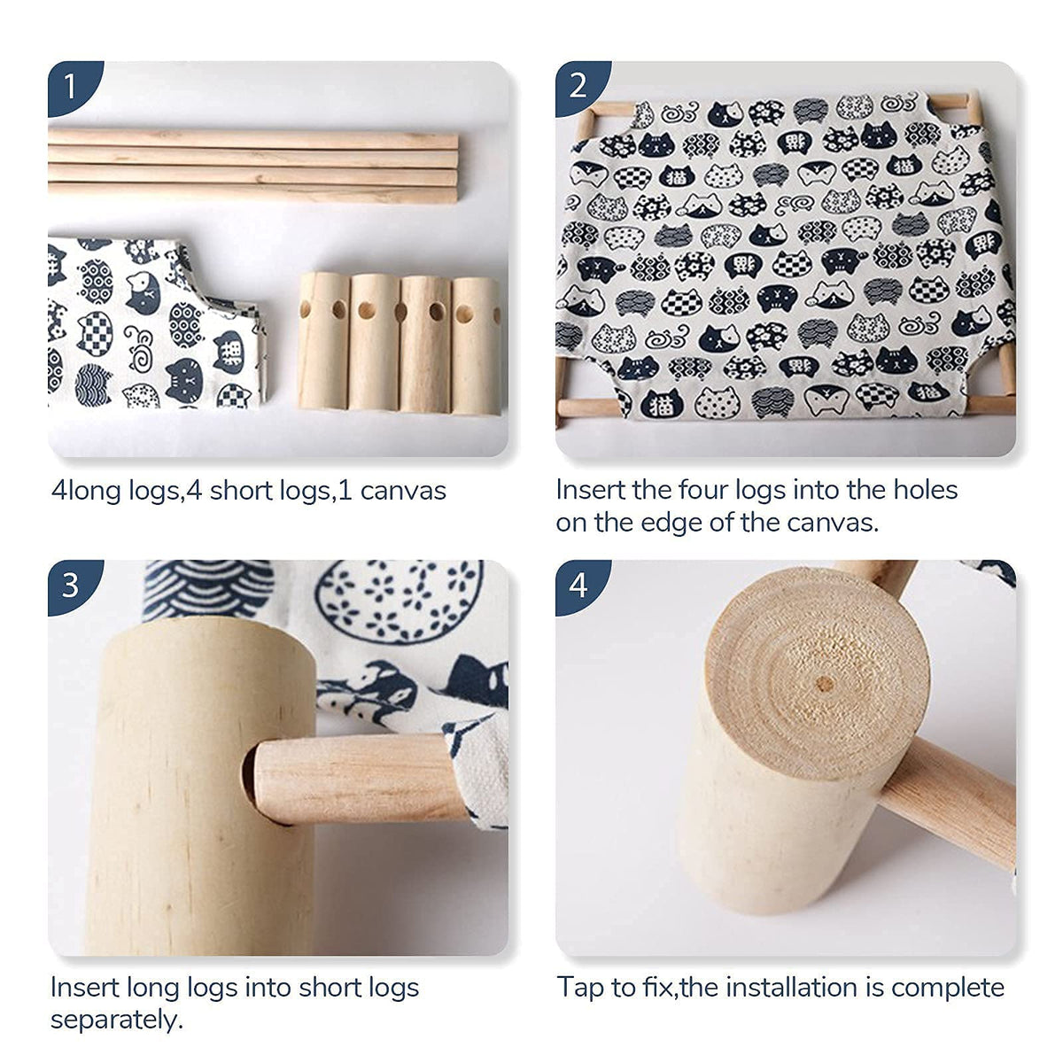 pet hammock: The maximum comfort bed for your cat to relax Pine wood: natural wood without staining waxing and other processes to avoid formaldehyde contamination canvas: breathable comfortable and wear-resistant easy to disassemble and clean - Easy to install and disassemble no other installation tools are needed --Machine wash and tumble dry