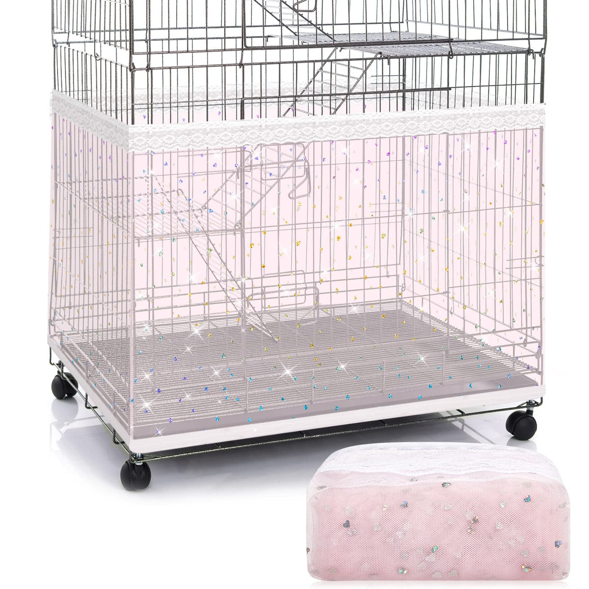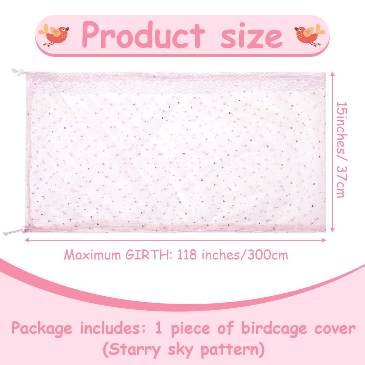Twinkle Star Large Bird Cage Cover – Extra Large Nylon Mesh Seed Guard Skirt for Parakeet, Macaw, African Birdcages (Pink, XL)
