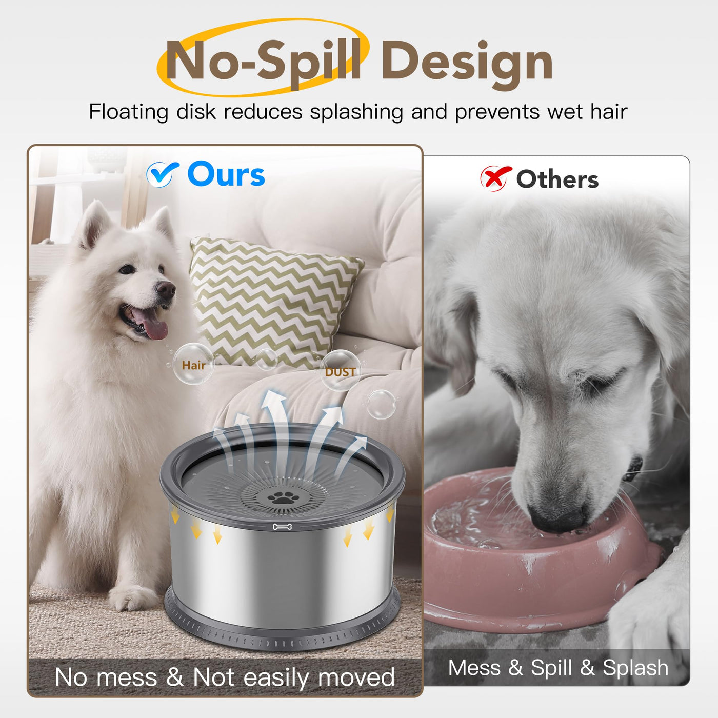 Twinsing 1.6 Gallon Dog Water Bowl, 6.5L/220Oz Stainless Steel No Spill Water Bowl For Large Dogs, Super Large Capacity Splash P