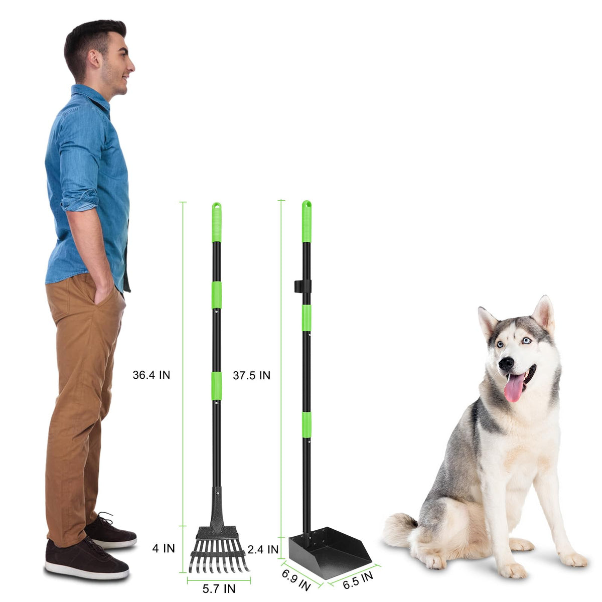 Twocorn Non-Breakable Pooper Scooper, Dog Pooper Scooper Tray & Rake Set With Adjustable Stainless Steel Long Handle For Large M