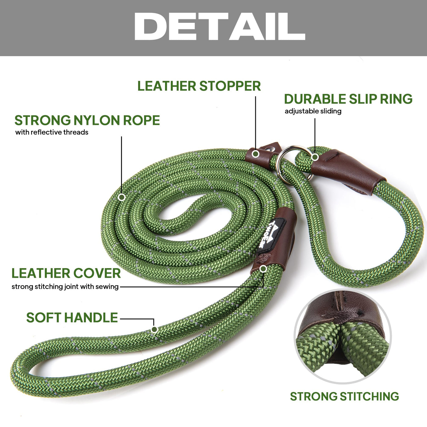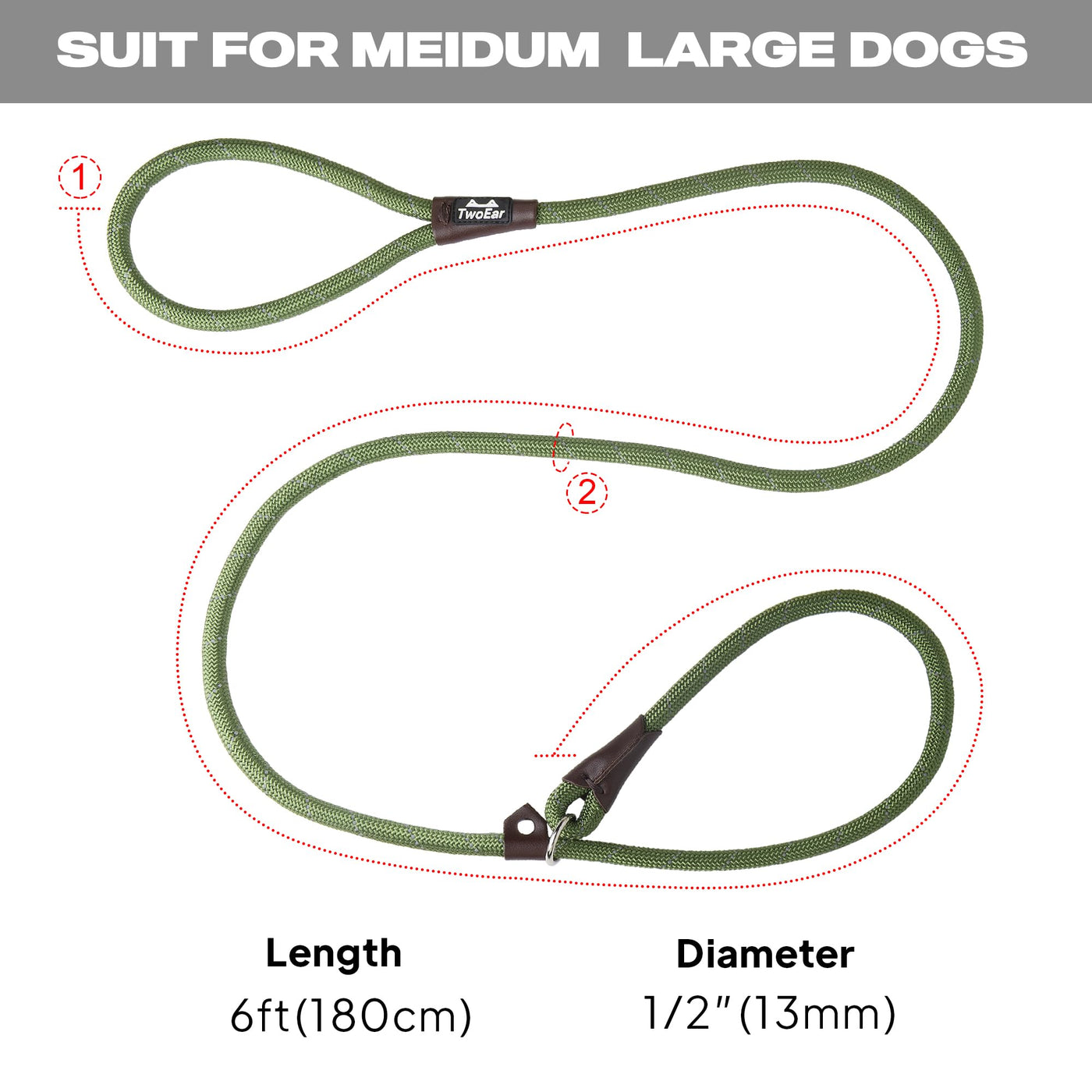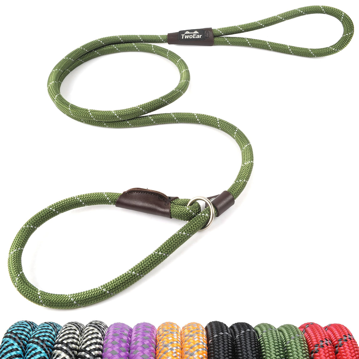 Twoear Dog Leash Dog Slip Rope Leash 1/2' X 6Ft Dog Training Leash Heavy Duty Strong Slip Lead Highly Reflective Threads For Small Medium And Large Dogs(Green)