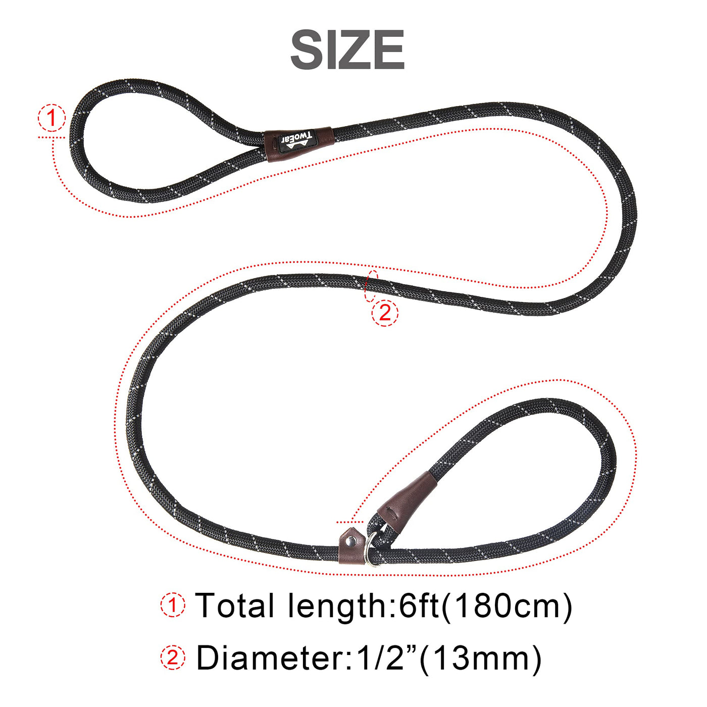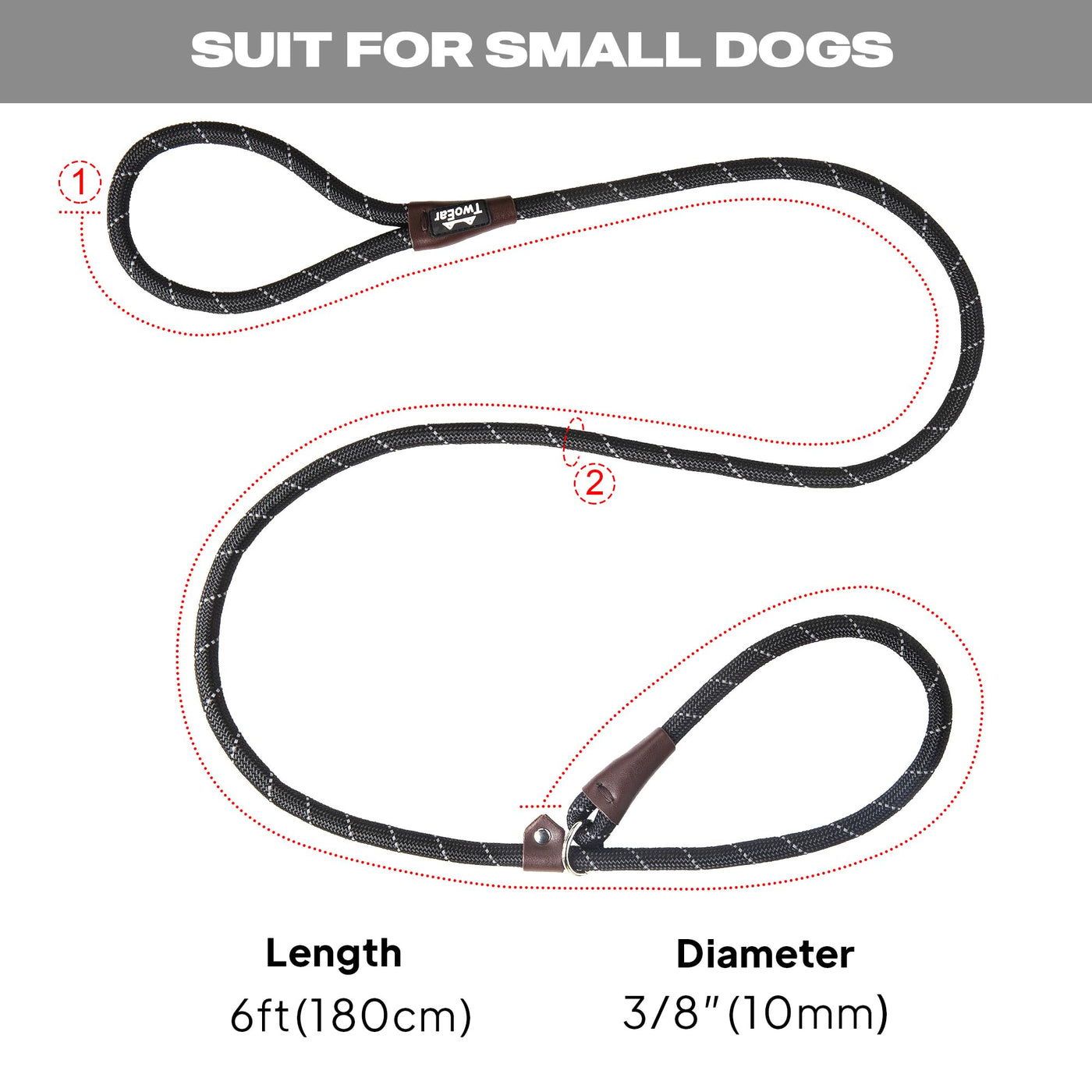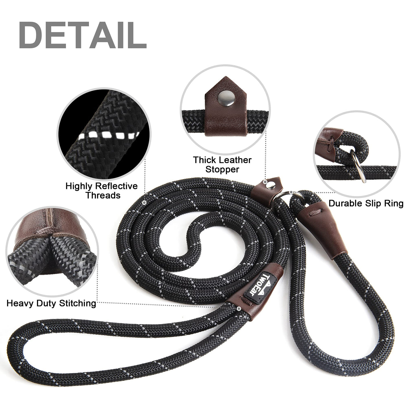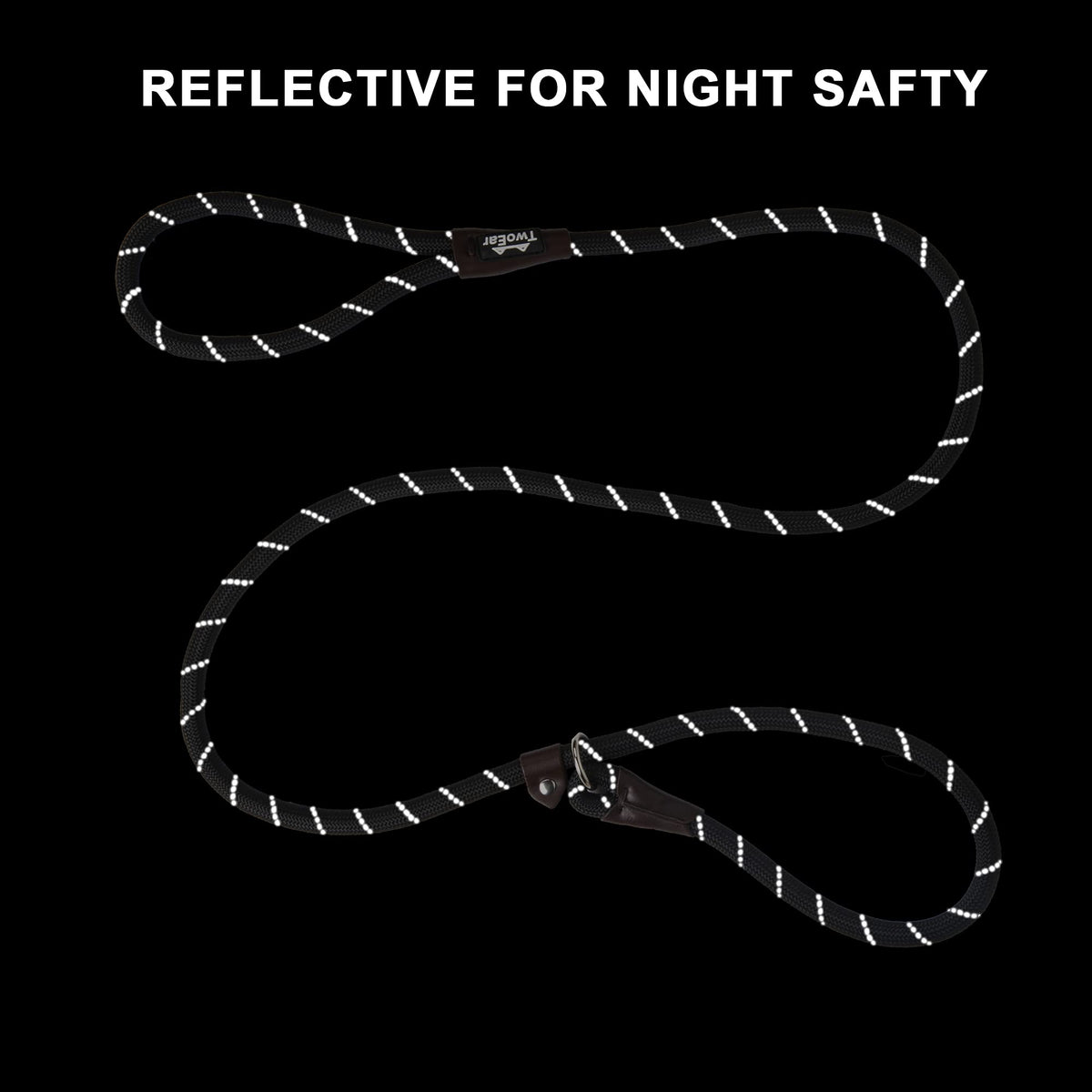 Twoear Dog Leash Dog Slip Rope Leash 6Ft Dog Training Leash Heavy Duty Strong Slip Lead Highly Reflective Threads For Small Medium And Large Dogs (Slim(3/8''X6Ft), Black)