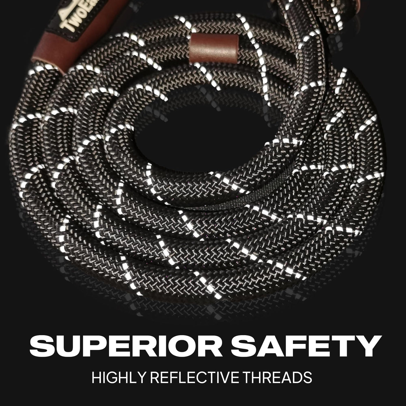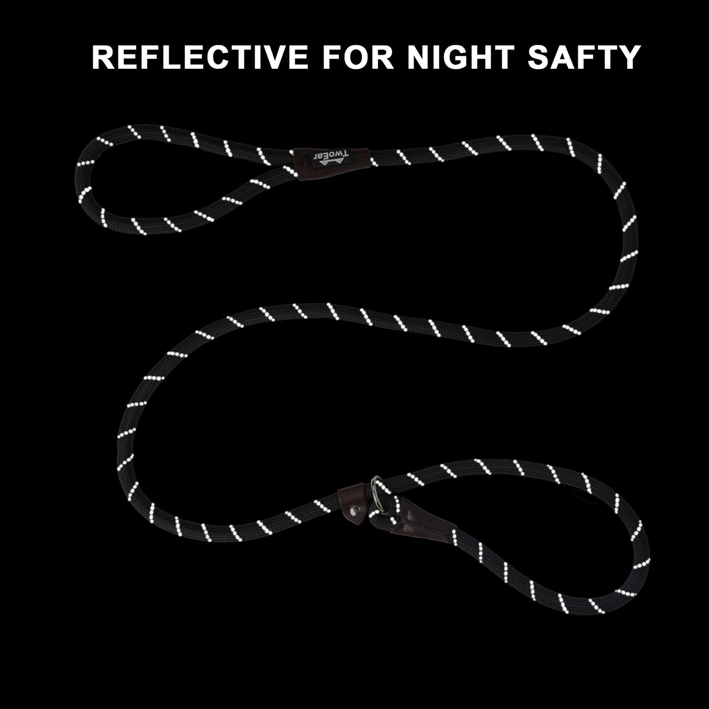 ?Reflective for Night Safety?This slip training leash has a night safe strands with full threads at all dog leash make your dog visible at night. This heavy duty dog leash is also made of 3/8 inch diameter ultra-durable and wear-resistant rock climbing rope which is reinforced with durable woven design.Ensure the safety of your fur baby.